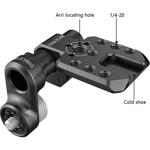 The durable aluminum bracket attaches to the 8T connector on your camera, and the monitor mounts onto the plate using the threads or shoe mount. The plate can rotate 360° around the rod for the best placement. The bracket assembly can support a monitor, EVF, or other accessory weighing up to 4.4 lb.