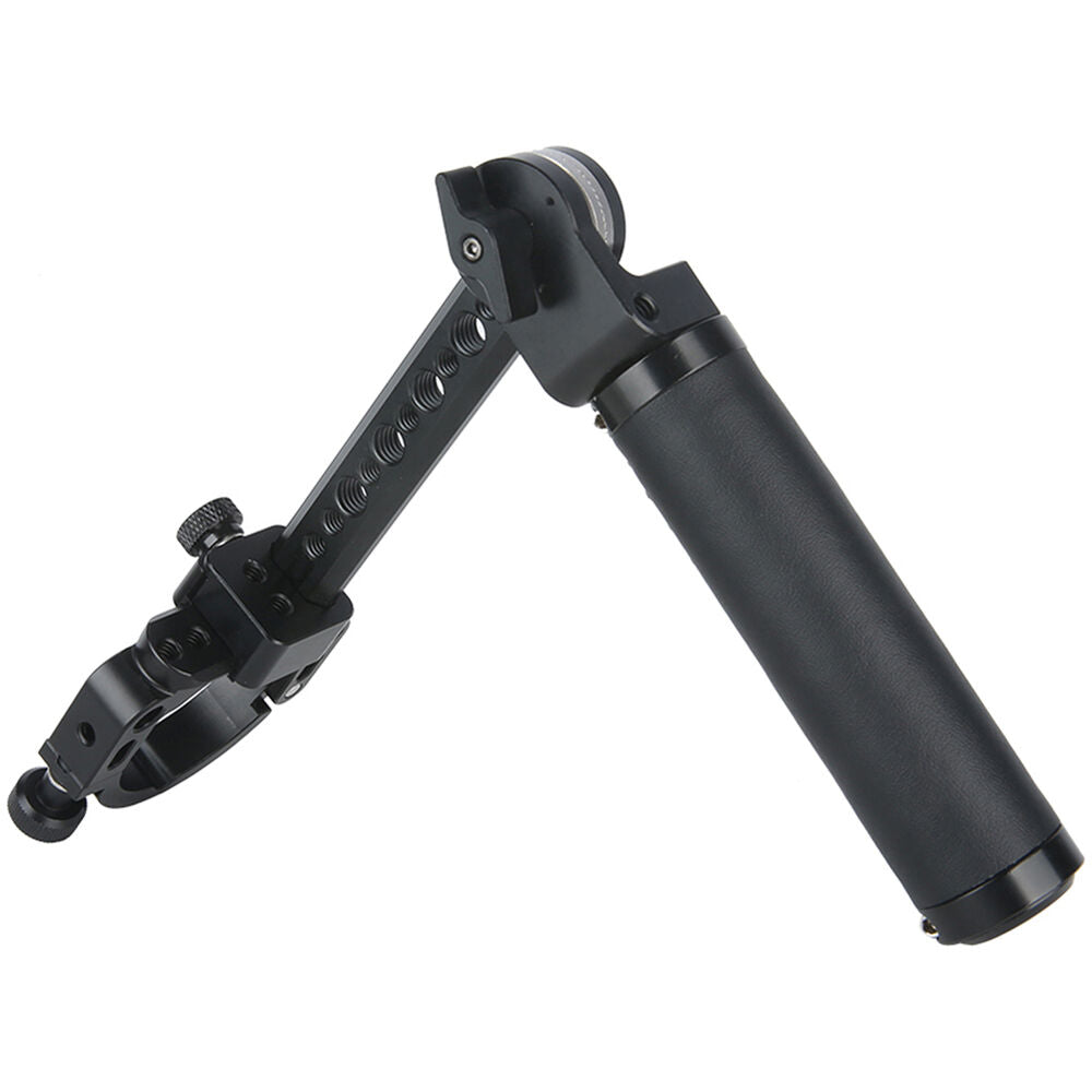 The Leather Rear Handle for Zhiyun-Tech CRANE 2S from Niceyrig secures around the gimbal handle and provides a rear grip for improved control in underslung mode and additional support in all other modes. The leather handgrip is rosette-adjustable 180° into different positions when loosening a lever on the side.