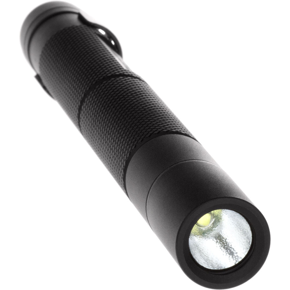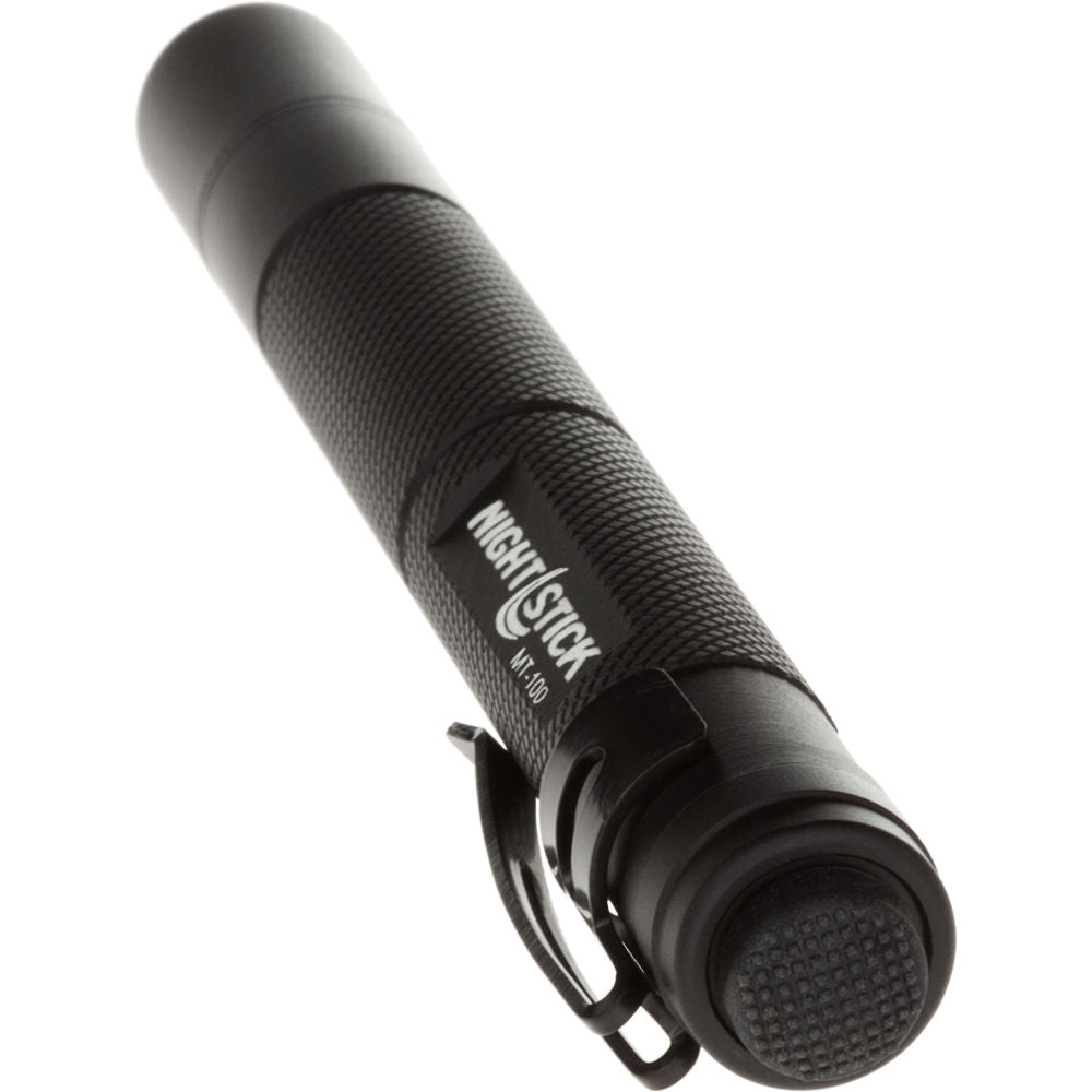 Sleek and lightweight with a single 100-lumen beam, the Nightstick MT-100 Mini-TAC LED Penlight is the perfect EDC illumination tool for inspectors, technicians, first responders, EMTs, mechanics, or tactical professionals. Water and impact resistant, the housing is made of lightweight 6061-T6 aluminum and treated with a Type II hard-anodized abrasion- and corrosion-resistant finish. Complementing the housing's durability is a scratch- and impact-resistant polycarbonate lens that protects the Cree LED. Its momentary and constant-on activation is controlled by a simple tailcap push-button switch. The light is powered by two included AAA batteries and is equipped with a removable pocket clip.