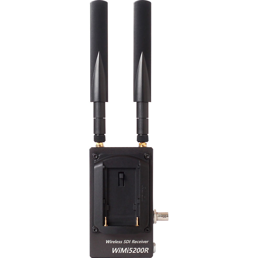 The WiMi5200A receiver features a single 3G/HD/SD-SDI output. It offers a 1/4"-20 mounting thread on the bottom and comes with an L-series battery plate as well as a power adapter. Batteries are sold separately.