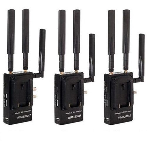 Wirelessly transmit high-quality HD video up to 1080p60 up to 4921' away using a 5 GHz Wi-Fi signal with this WiMi5200A Wireless Transmission System Bundle from Nimbus. The bundle includes one WiMi5200A 3G-SDI H.264 encoder transmitter and two WiMi5200A 3G-SDI decoder/receivers.