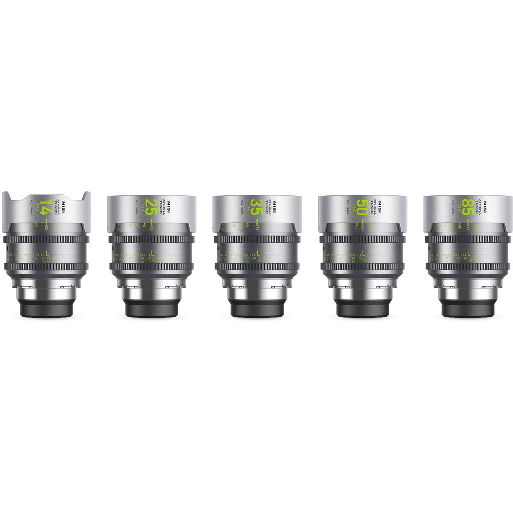 NiSi ATHENA Tuned Prime T2.4/1.9 Full-Frame 5-Lens Kit with Case. Each silver lens in this limited-edition kit features slightly lower contrast, softer bokeh, and subtle blue/purple flares, lending a slightly ethereal look to your footage. Please note that these tuned lenses are only available as part of this kit, not individually.