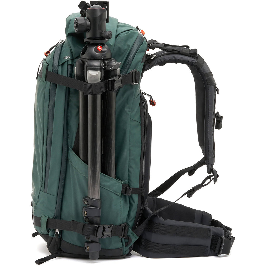 This pack will give you peace of mind by keeping your camera equipment safe from the elements. An aluminum frame and ergonomically designed, 3/4" thick foam shoulder straps provide stability and for comfortable carrying. The torso height adjustment system in three settings of small, medium, and large will ensure you find the ideal fit. The load stabilizer system moves weight to the frame and transfers it to the hips. The back padding and body-contact fabric is quick drying, soft, and nonabrasive.