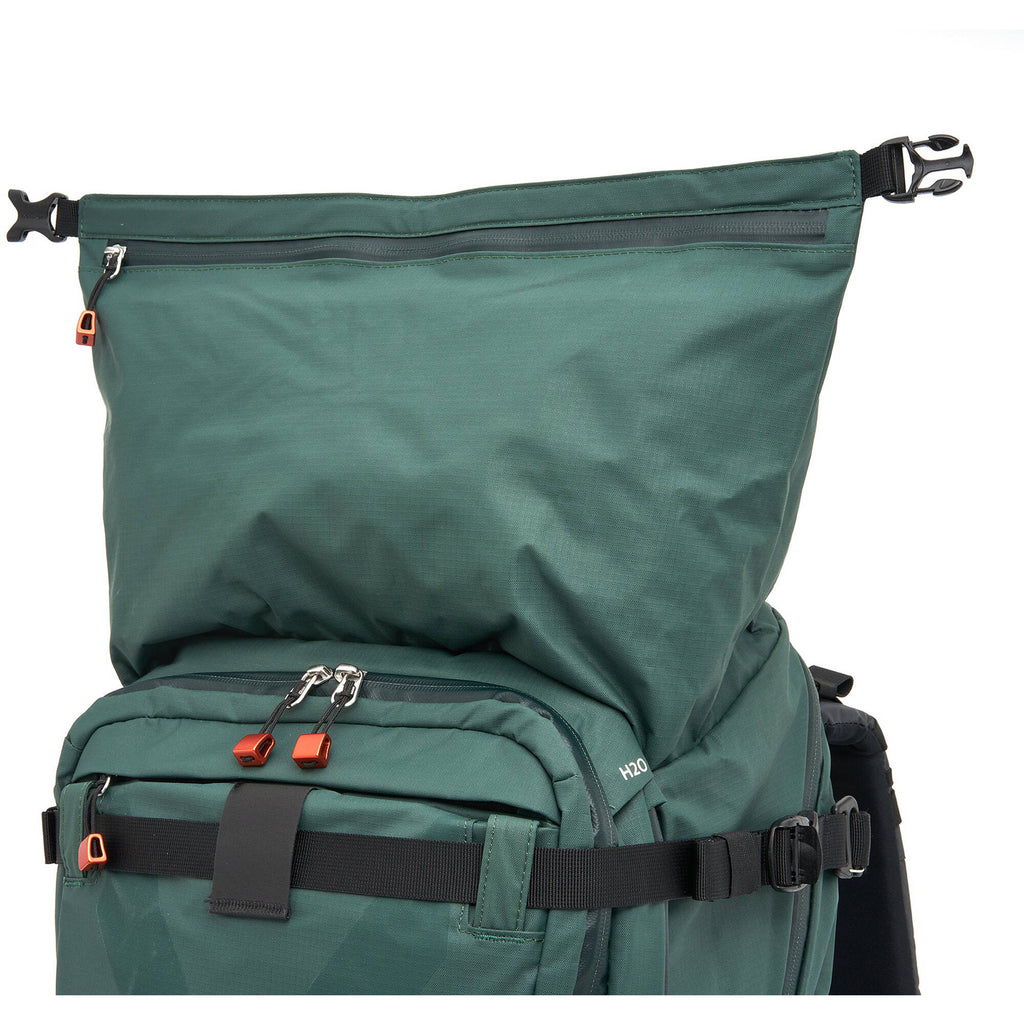 The pine green FJORD 60-C ECONYL Adventure Backpack from NYA-EVA can hold and carry a variety of gear and accessories while out in the field. This pack features fabric made of ECONYL, a strong, lightweight nylon fabric made from nylon waste. Compressed, this backpack holds 44L and can fully expand to 60L. The top expansion pocket allows you to transform the pack from a 44L carry on into a 52L adventure pack. Open the front expansion zips and transform the pack into the 60L expedition mode.