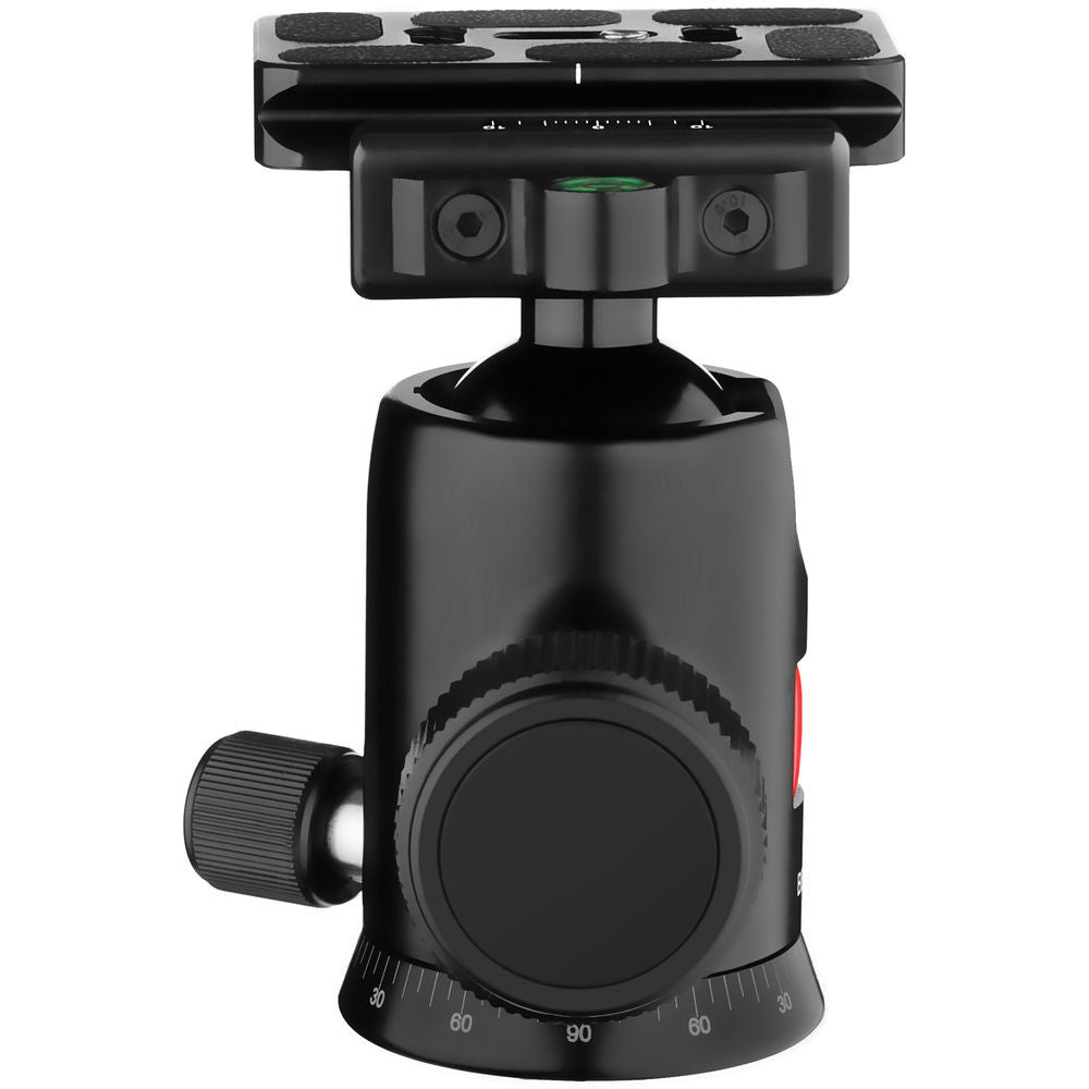 The BE-117's multiple knobs enable higher-precision adjustments to the head than are possible with single-lever heads. Taking panoramic photos is simple, for instance, because you can pan a specific number of degrees while keeping the head's tilt position locked. In fact, the BE-117 features degree markings around its circumference to aid in that task. A notch in the ball head allows you to quickly change between portrait and landscape orientation.