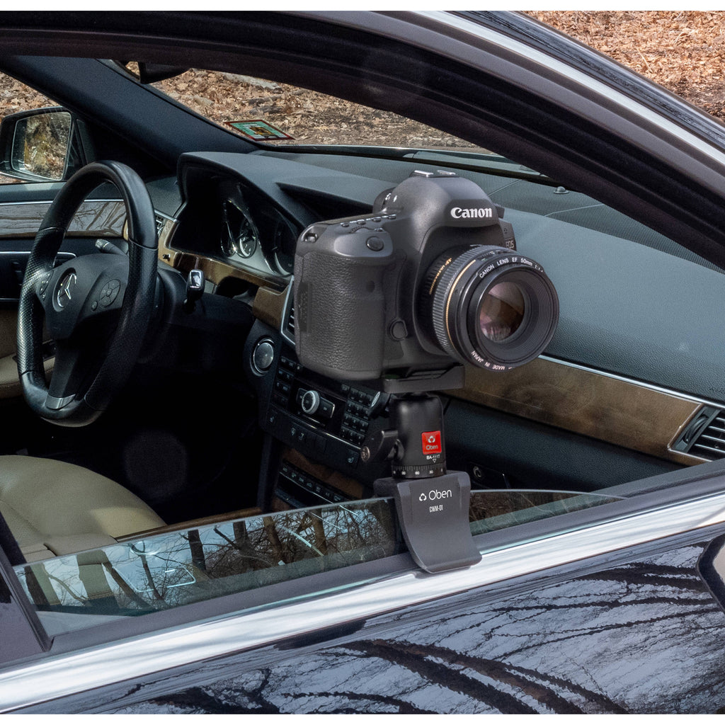 The Oben Car Window Mount clamps directly to a car window and provides a 3/8"-16 mounting stud for attaching a head and camera. It enables you to shoot photos and video from inside your car in various applications. A popular use is capturing wildlife in a safari or similar setting without having to get out of the car. It can also be used to slowly drive by your subject in film or commercial applications. The mount is secured to windows and other surfaces with a clamp range up to 0.5" thick, and it also provides a lip rest for window-to-door stabilization. It also features padding to provide scratch protection for the window and door.