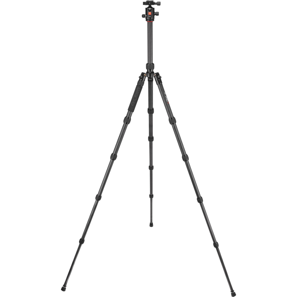 The CT-3586 Carbon Fiber Tripod and Triple Action BZ-226T Ball Head from Oben is a lightweight five-section support, which has twist locks that open with just a quarter turn, and each section extends along with the one-section center column to a maximum height of 62.5". With its three variable leg angles, it allows you to splay the legs out and replace the regular center column with the included low-angle center column, so the tripod can go to a minimum height of 8.5".