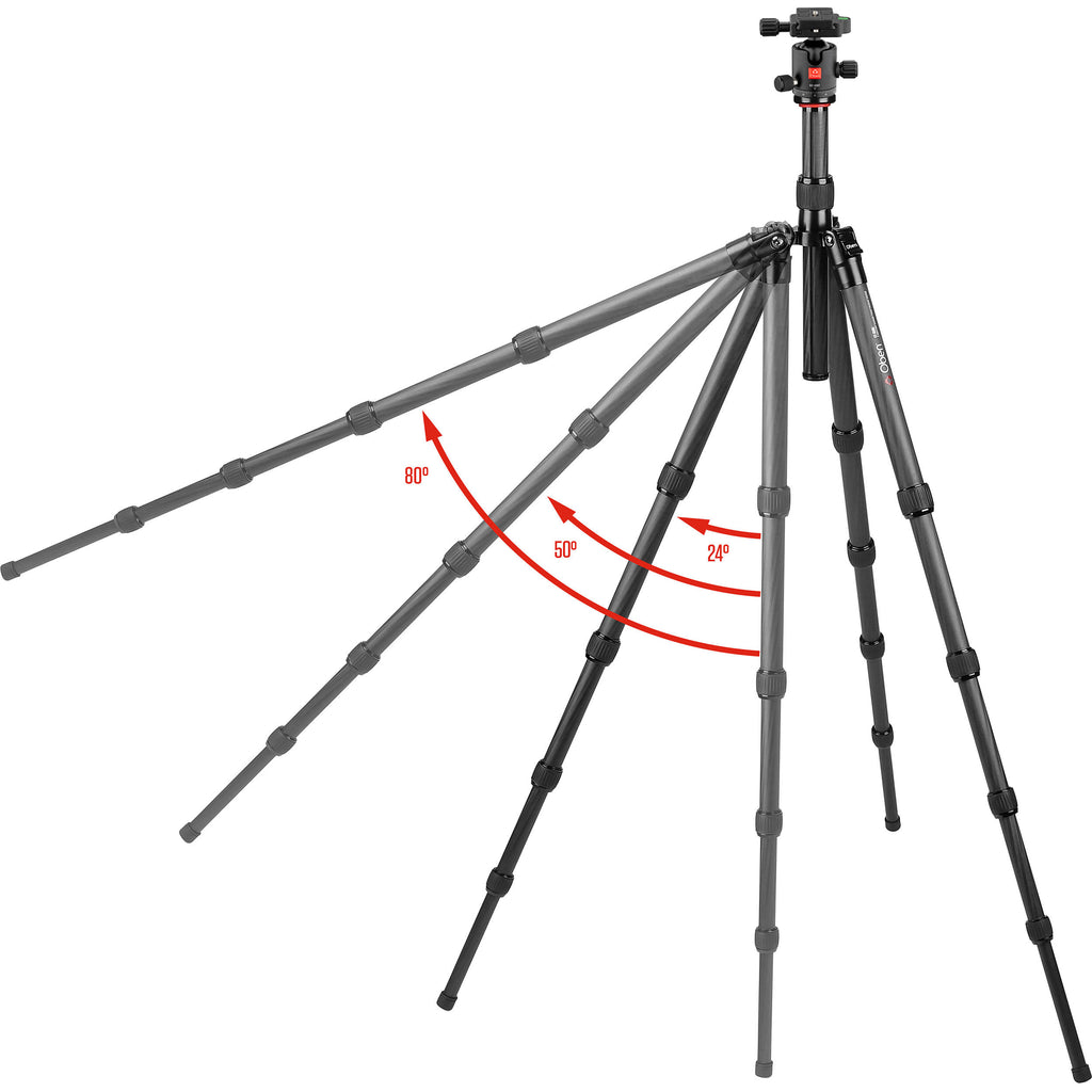 - The lightweight carbon fiber telescoping legs open and close by turning the twist locks a quarter turn, and the legs fold in the reverse to a compact 16.6" tripod for storage or transport.