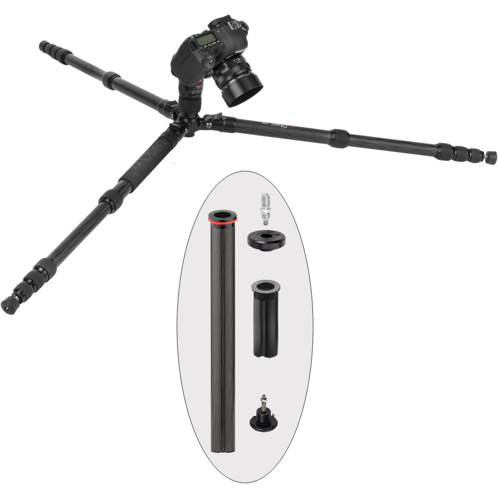 - The rapid center column, which is reversible, extends and locks into place via its twist lock. An included low-angle center column allows you to get those macro shots that are close to the ground.