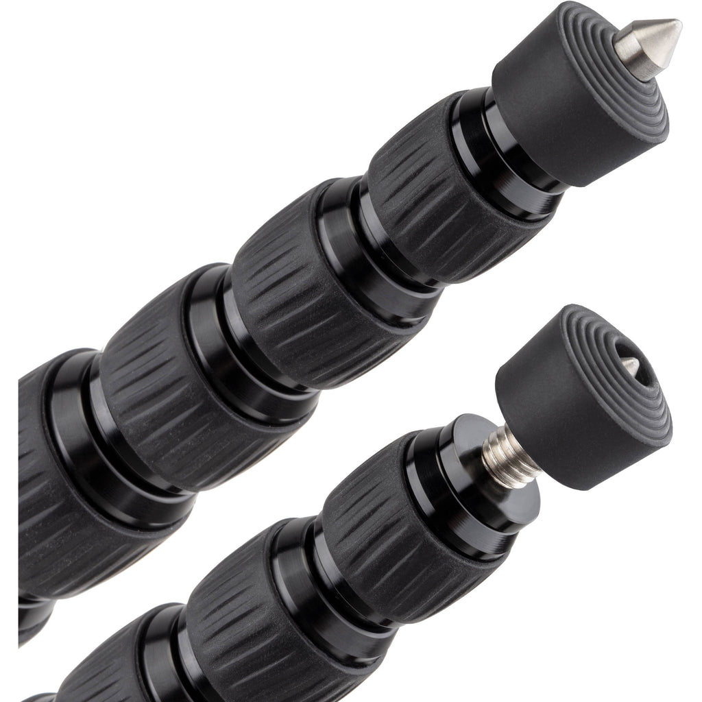 To store or transport the tripod, the legs fold in the reverse to a compact 16.6". Furthermore, one leg is detachable and can convert into a working monopod with a maximum height of 65.2". Each rubber foot retracts back to expose a metal spike that can be wedged into softer terrain for extra support and stability.