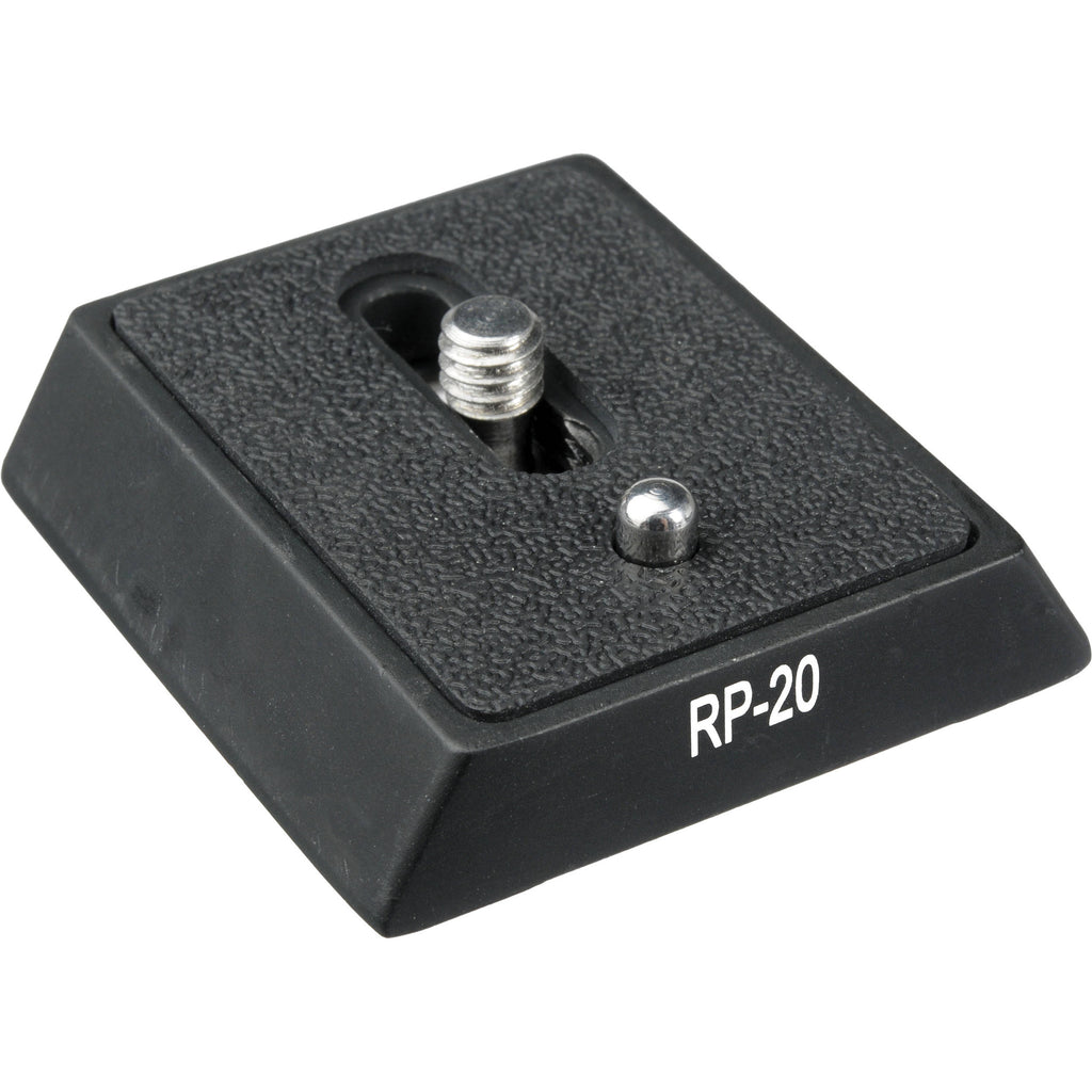 The Oben RP-20 Quick Release Plate is a camera plate that fits the dual-locking quick-release element of Oben's PD-117, BA-117, BA-126, BA-117T, BA-126T, BA-1, BA-1T, BA-2, BA-2T & VH-R2 ball head models. The plate features a 1/4"-20 screw with a ring on the underside that allows you to attach it to a DSLR, point & shoot, or video camera without using tools. For camera stability, the top of the plate features a rubberized surface and a retractable video pin.