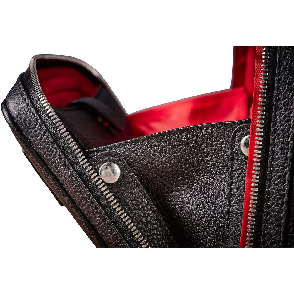 The LHSA Leo S-Correspondent Camera Bag from Oberwerth in brown with red lining is a spacious, minimalistic bag made from soft padded cowhide leather. It is designed to fit the Leica CL, Q, M, SL along with several lenses, and will fit three to four M lenses plus a camera with one lens, a second M body with one or two lenses, or a SL with one to two lenses. This bag was made without a front flap and will give you quick hip access to your camera, lenses, and other accessories. Access your camera from the top or the side of the bag. The zippers have internal fabric to protect your hand and gear. Additionally, there is a small security flap over the top opening and leather open-limiters for shoulder use.