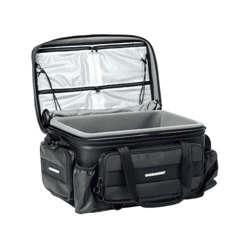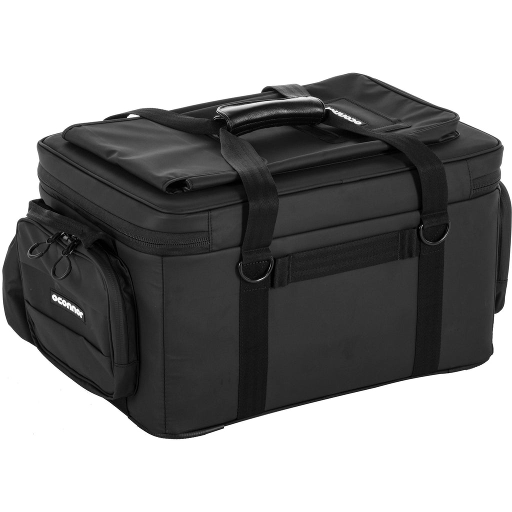 The OConnor Camera Assistant Bag is designed to securely hold your fluid head and other gear and to be comfortably worn around the back or shoulder or carried by hand. It's a fully waterproof bag featuring quality stitching and zippers and suitable for all weather conditions and all locations. A rigid hard shell inside the bag provides ideal protection for lenses and other sensitive gear. Double-skin, seamless linings provide waterproof protection, as does a soft dustproof and waterproof lid that functions as a protective membrane under the top cover. This lid secures to the inner lining of the bag and can be hidden away in a designated pocket when not needed.