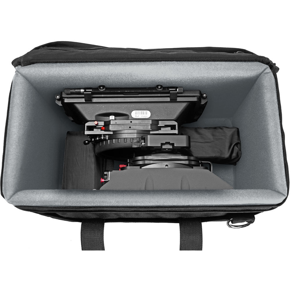 Includes the O-Box WM matte box, a wide mini sunshade, top flag, two 4 x 4" filter frames, two 4 x 5.65" filter frames, and a 15mm LWS rod bracket Wide mini sunshade - offers augmented rigidity and impact resistance resulting in reduced sunshade replacements in professional production environments Shields the lens from excessive sunlight via top flag fitting into the integrated top flag mounting bracket Includes two 4 x 4" and two 4 x 5.65" filter frames that act as fixed as well as 360° rotatable filter holders allowing the matte box to accept two filters Provides rod interface for the 15mm LWS standard Porta Brace MB-1B Matte Box Case (Black)The Porta Brace MB-1B Matte Box Case (Black) is designed to carry a Matte Box such Chrosziel, Fujinon, Petroff, Tiffen, Vocas, or similar size matte box set-up. It organizes all the parts of the Matte Box; so it can be quickly transferred to the camera lens. The case is made from 1000 denier water-resistant Cordura nylon with a rigid interior frame and a fully foam padded interior. There is a large front outside pocket for accessories and a mesh pocket inside the top that allows viewing the contents. Optional FC-1 or FC-2 filter cases can be stowed inside allowing an entire matte box system to be ready at hand. The case is carried by suede leather-covered carry handles or an HB-10 suede leather-covered shoulder strap.