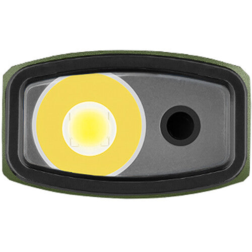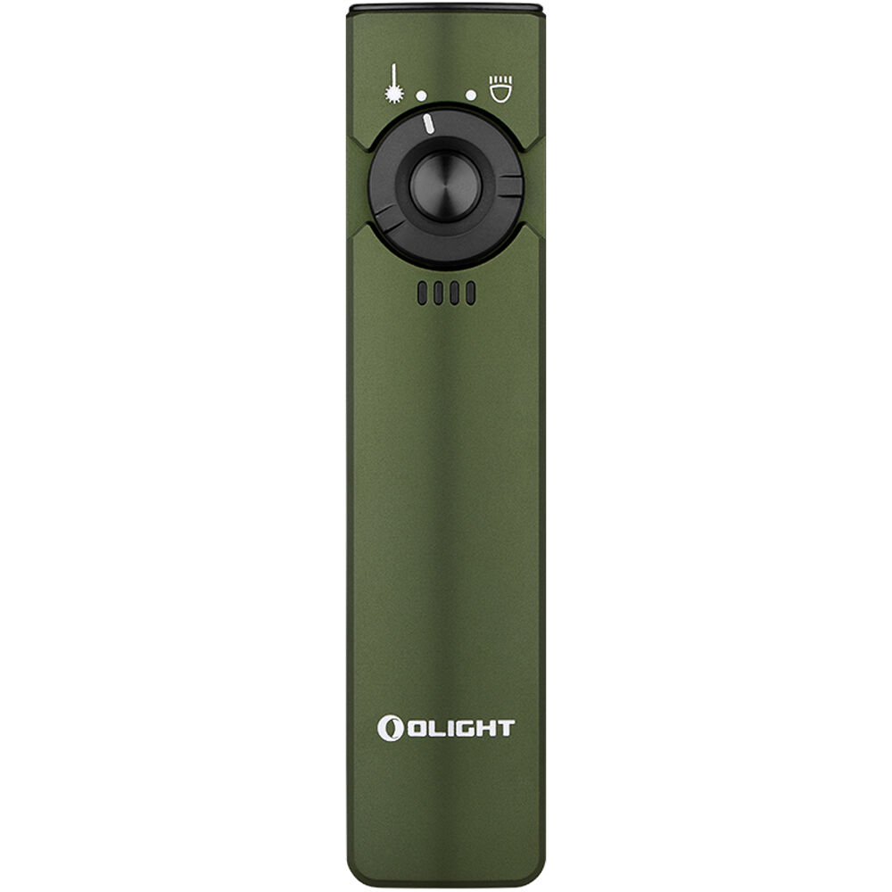 Olight's compact and powerful OD green Arkfeld Flat Flashlight is two tools in one�a flashlight with a long runtime and a green laser pointer. It features five brightness levels from 1 to 1000 lumens of cool white light (5700-6700K), an effective beam distance of 331', and a maximum runtime of eight days. Its intuitive interface allows you to easily control the flashlight with a center button and selector that turn the light on and off and adjust the brightness and modes. The Arkfeld's integrated magnetic end design conveniently attaches to metal surfaces for hands-free use. A 1050mAh rechargeable lithium polymer battery recharges with an included magnetic USB cable.