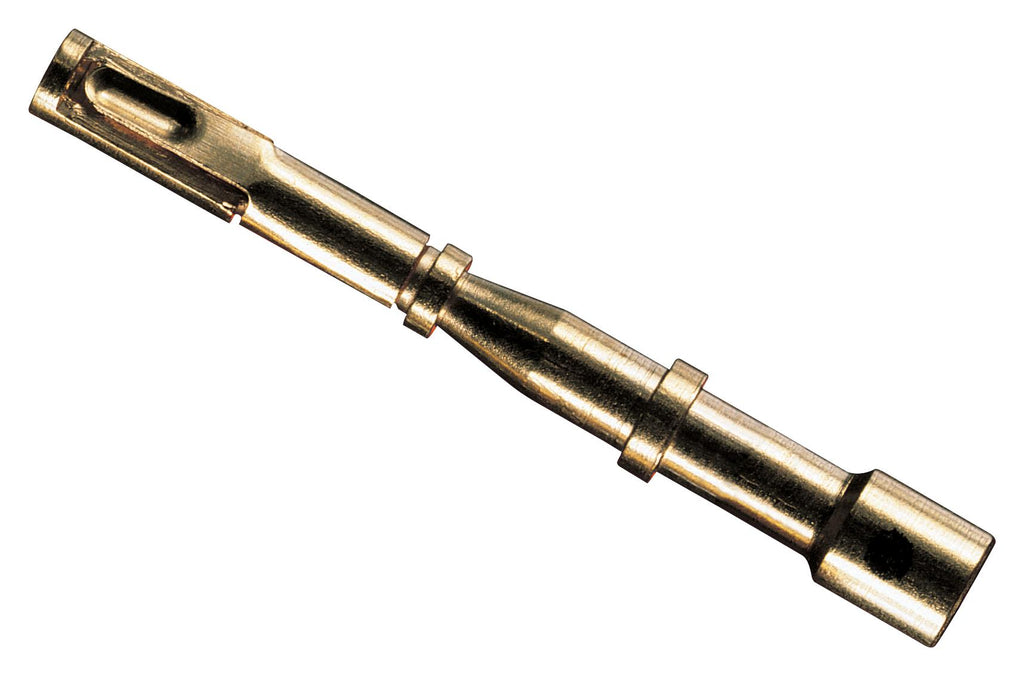 Thermocouple contact for model MTC connectors. Push-in crimp style contacts are manufactured from thermocouple alloy materials and are generically color-coded for easy identification. Contacts are crimp terminated outside the connector assembly and inserted into the appropriate cavity by means of an insertion tool. They can be readily removed from the connector assembly using a special removal tool.