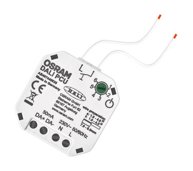 The Osram DALI PCU lighting controller is a compact control unit for manual dimming, switching of luminaires lighting controllers and has an electrical rating that ranges between 220V and 240V. The DALI PCU provides intuitive manual dimming and switching of DALI light fittings, and implements DALI edition 2. You can combine it with standard mains-fed presence and motion detectors, and connect up to 4 units in parallel to set up multiple control points with automatic synchronization between them. You can also configure its behaviour in the event of power failure It's a great choice in conference rooms, particularly with moveable partition walls, and for restaurant lighting and shop lighting. Each DALI PCU uses a control cable of up to 300 meters, has an integrated DALI supply and allows you to set a custom minimal brightness level.