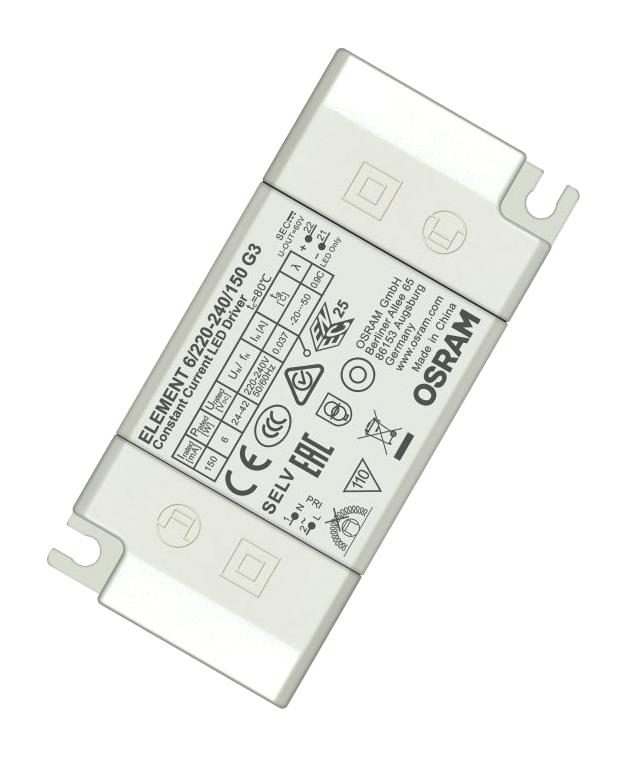 ELEMENT-6/220-240/150-G3 is a non dimmable, constant current LED driver. It includes overload protection, short-circuit protection. Areas of application includes spot light and down light, panels, other Indoor LED luminaries. Acc. to IEC 61347-1/Acc. to IEC 61347-2-13/Acc. to IEC 62384/Acc. to IEC 61000-3-2/Acc. to IEC 61547/Acc. to IEC 61000-3-3 approved.