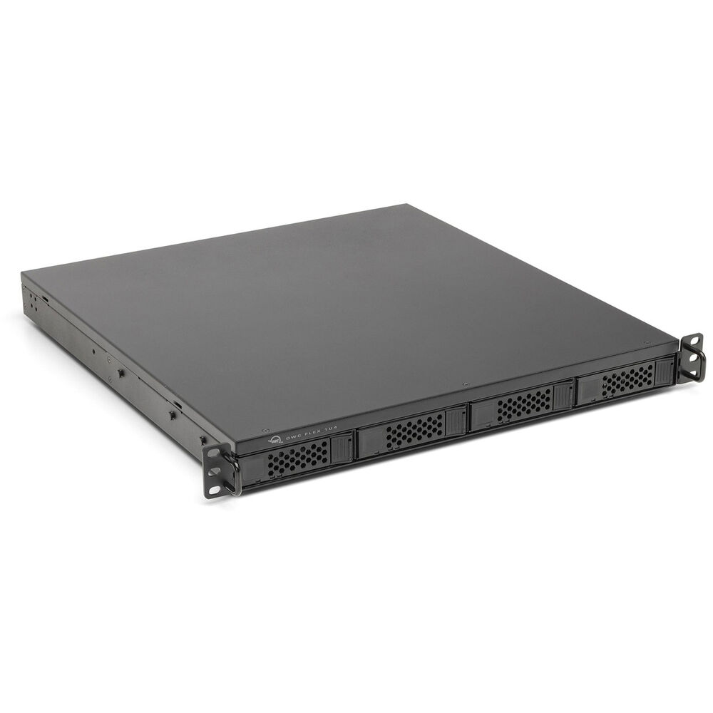The 4TB Flex 1U4 4-Bay Thunderbolt 3 Storage Array from OWC / Other World Computing is a flexible storage, docking, and PCIe expansion solution for rackmount use. Compatible with macOS 10.15, 11.x, and 12.x, the Flex 1U4 features a storage capacity of 4TB, which is split between 4 x 1TB NVMe 2.5" U.2 SSDs. Connectivity to your host system is established using a 40 Gb/s Thunderbolt 3 port, which supports data transfers at up to 5000 MB/s. Daisy-chain five additional devices or add a second display to a second Thunderbolt 3 port, while two 10 Gb/s USB Type-C, three 10 Gb/s USB Type-A ports, and one DisplayPort 1.4 port provide additional connectivity options. Further expansion, such as audio/video capture cards, 10Gb Ethernet, SSD storage, a hardware RAID, or other I/O card can be realized using the PCIe 3.0 x16/x4 slot.