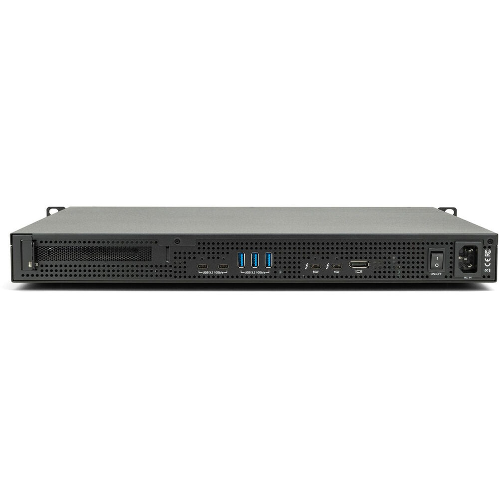 You'll turn your expandability and connectivity dreams into reality when you add the OWC Flex 1U4 to your rack or cart. Use a mix of 2.5 or 3.5" SATA/SAS and U.2/M.2 NVMe drives with four quick-access, hot-swappable drive bays. Connect mixers, keyboards, cameras, and other gear to your heart's content, as well as charge mobile devices with an ample variety of Thunderbolt and USB ports. Add up to an 8K display via DisplayPort. And when you have a custom capture, recording, networking, or storage need, the OWC Flex 1U4 lets you install a PCIe card to conquer specialized tasks.