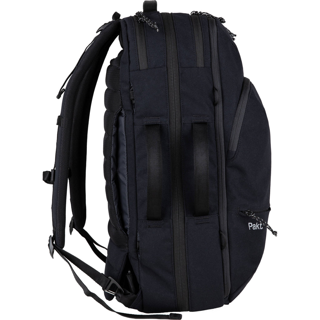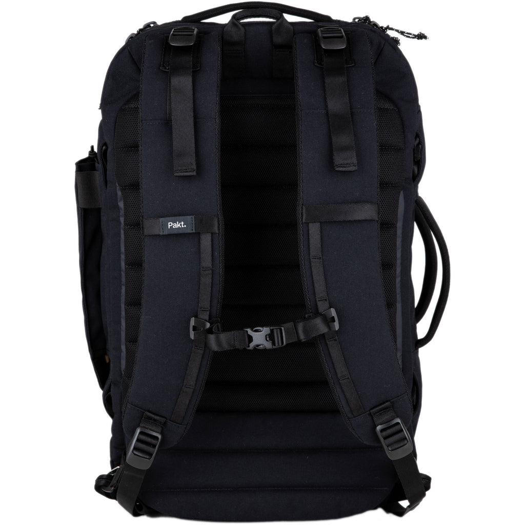 The Pakt Travel Backpack in black offers 35L of storage so you can carry everyday work essentials or clothes for a flight or trip. Divided in the middle, this travel pack has the functionality of a suitcase with two separate sections to hold your belongings. The expanding compartment adds almost 3" of depth and holds the separately available Pakt Everyday 15L bag or stores extra gear.