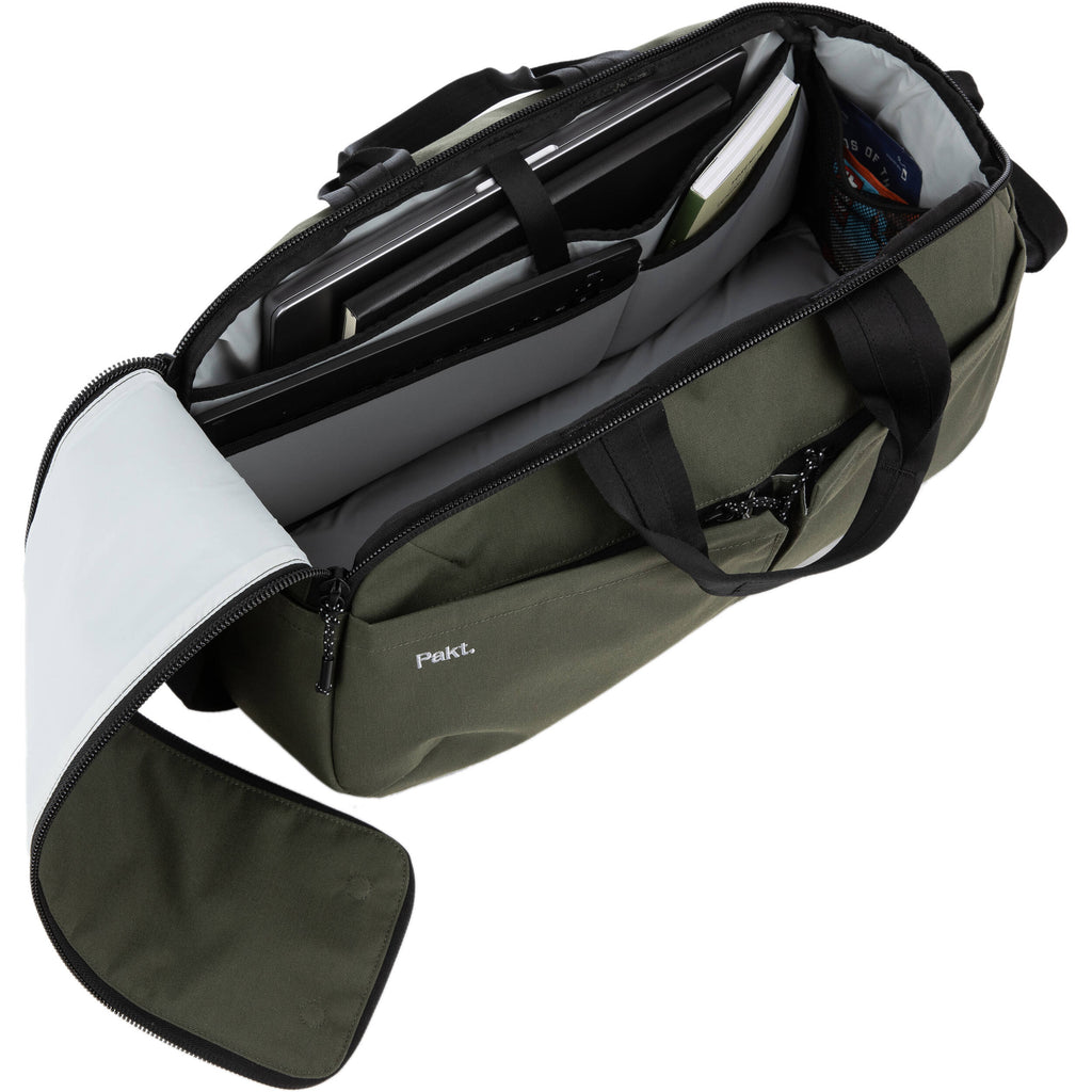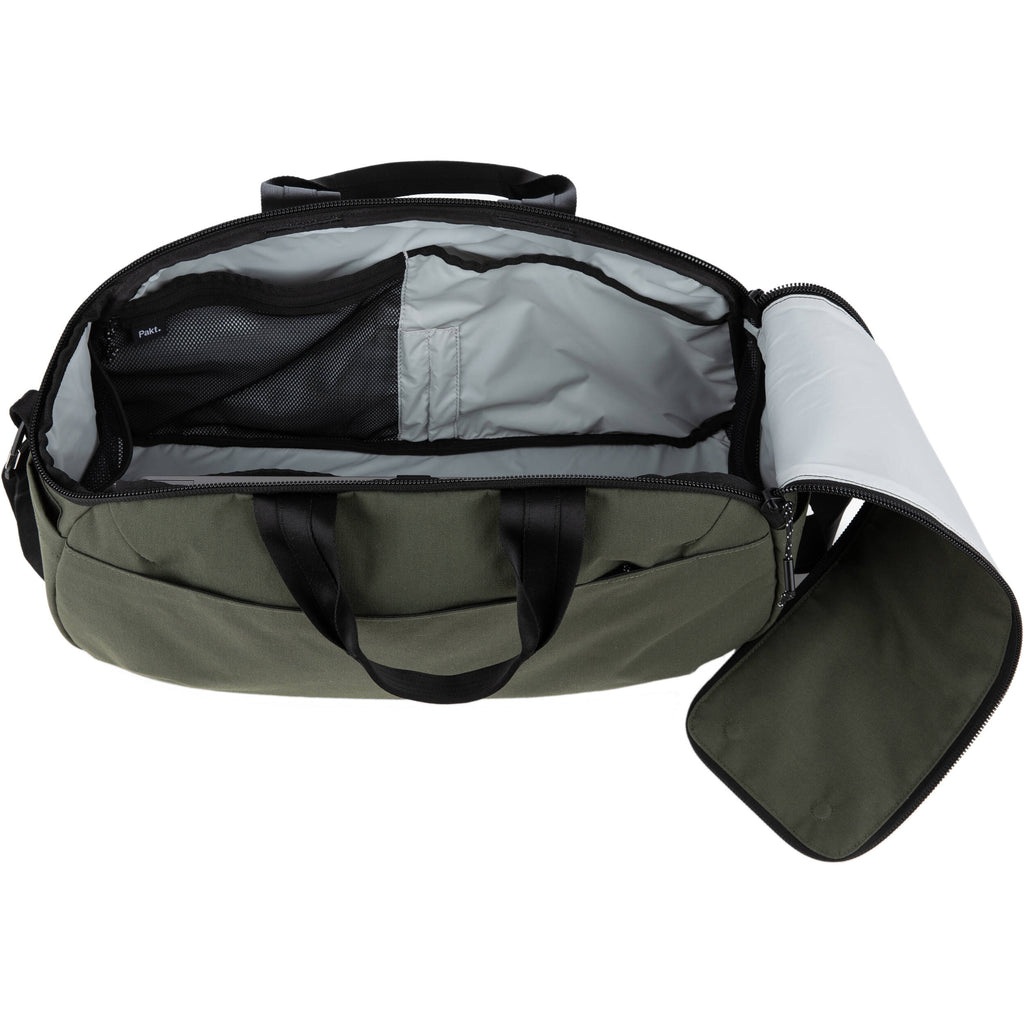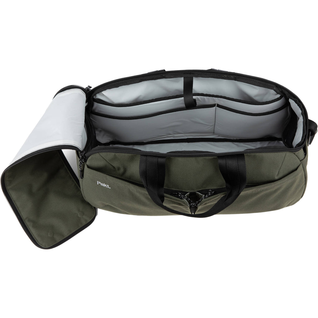 The forest, 25L Travel Duffel from Pakt is ideal for everyday use or extended travel. Made from recycled nylon, the bag is water resistant. The spacious main compartment easily holds enough clothing for a three-day trip or everything you need for a long day out when heading from work to the gym and to happy hour. The top-loading design offers plentiful organization and lets you easily see and access everything you've packed.