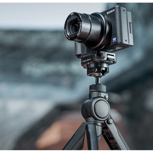 The SnapLock Mini Reverse Ball Head from PYGTECH has an inverted design that makes it different from traditional tripod heads. The compact ball head has been designed to offer resistance allowing for a smooth and controllable operation. All it takes is a squeeze of a single control for the omni-directional ball-head to easily switch to vertical shooting mode or 360° panning. It incorporates a fast SnapLock plate that mounts in one easy step, rather than the slow and tedious traditional tightening knob, and also has a safety lock for added security. The patented SnapLock plate is Arca-type compatible and contains a tight-fitting screw to prevent it from coming undone like traditional quick release plates. It has a square shape, so it can be installed in every direction. The base features a cold accessory foot with a locking ring and a 1/4"-20 threaded socket, so it can be mounted on a camera shoe, cold shoe, or virtually any bracket where it may be used to build a custom rig.