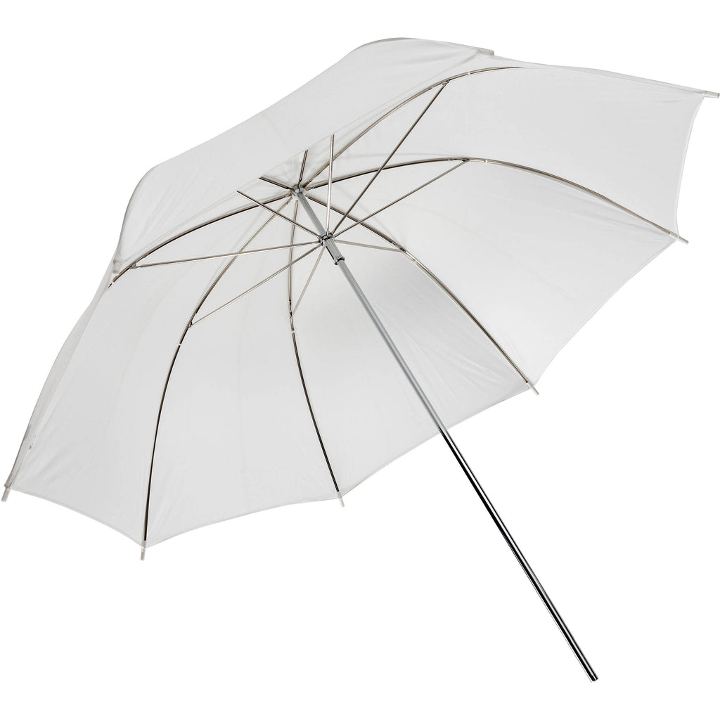 This 43" White Translucent Umbrella from Impact is a versatile all-around light modifier that will create a pleasing light that's far less harsh than a bare light source. It can be used with flash, LED, or fluorescent light sources. As a shoot-through umbrella, it broadens and softens the light source output and minimizes shadows, making it ideal for portrait photography. The translucent fabric's diffusing properties allow light source to be placed close to a subject for a softer light that's also great for weddings and fashion. It has a standard size 8mm umbrella shaft that is compatible with most umbrella mounts.