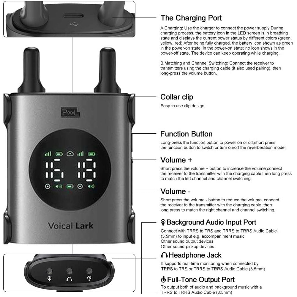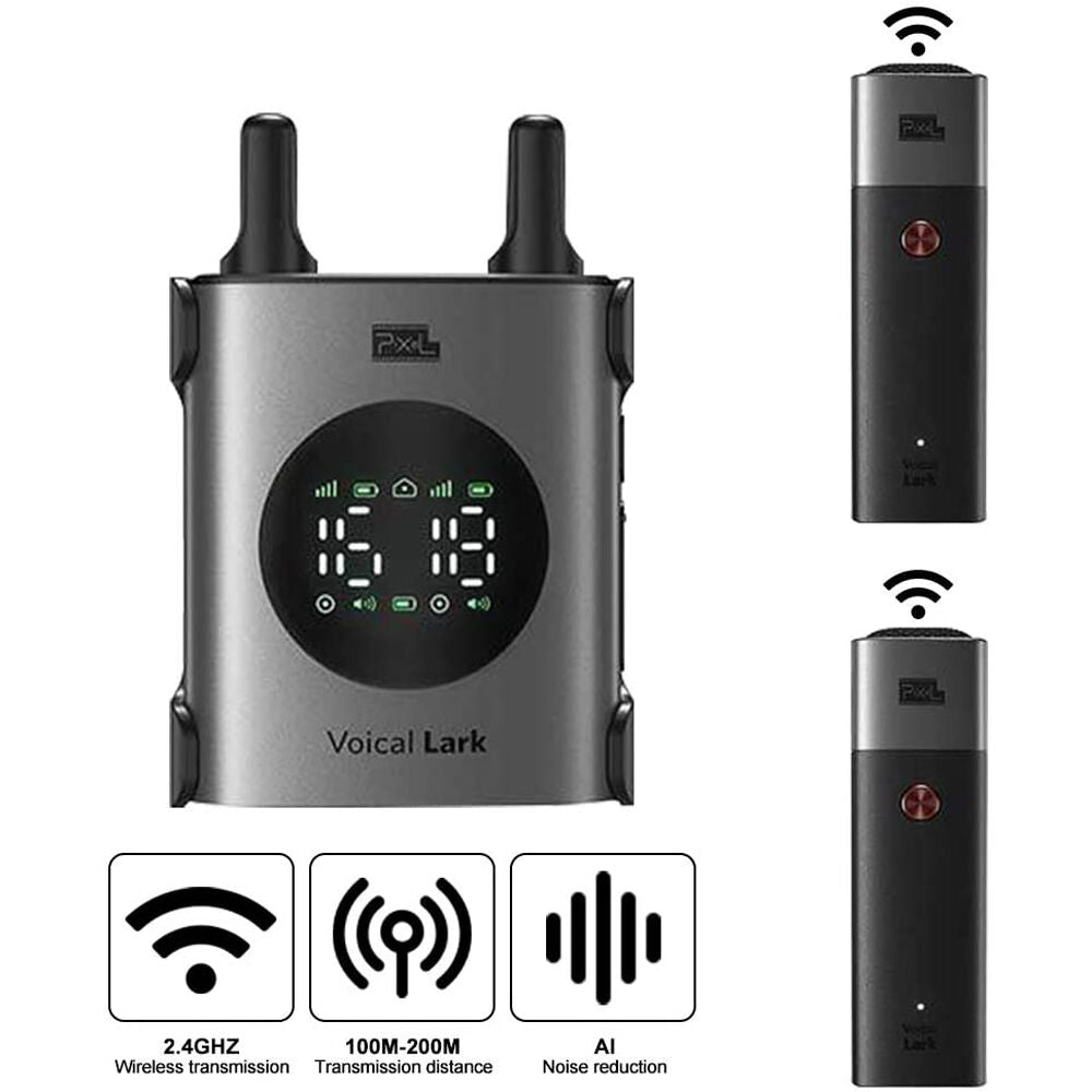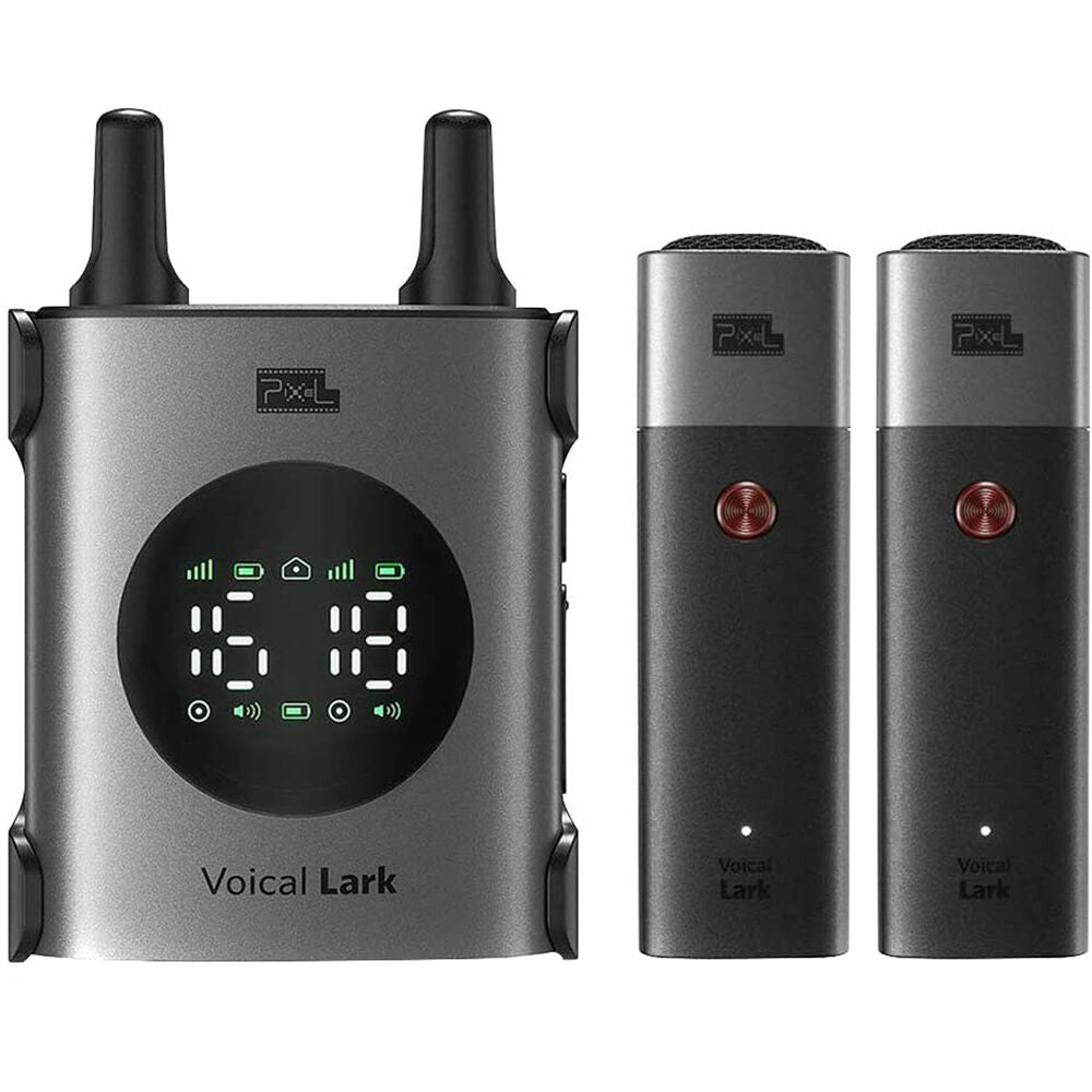 Designed for video content creators, podcasters, and vloggers, the Pixel Voical Lark is a compact, wireless microphone system with two microphones and just one receiver. It offers a complete solution for recording clear dialogue, interviews, and speech with two people talking simultaneously�directly to a mirrorless/DSLR camera, an iOS/Android smartphone/tablet equipped with a 3.5mm headphone jack, or a laptop/desktop computer or, using the included 1/4" adapter, to a PA system.