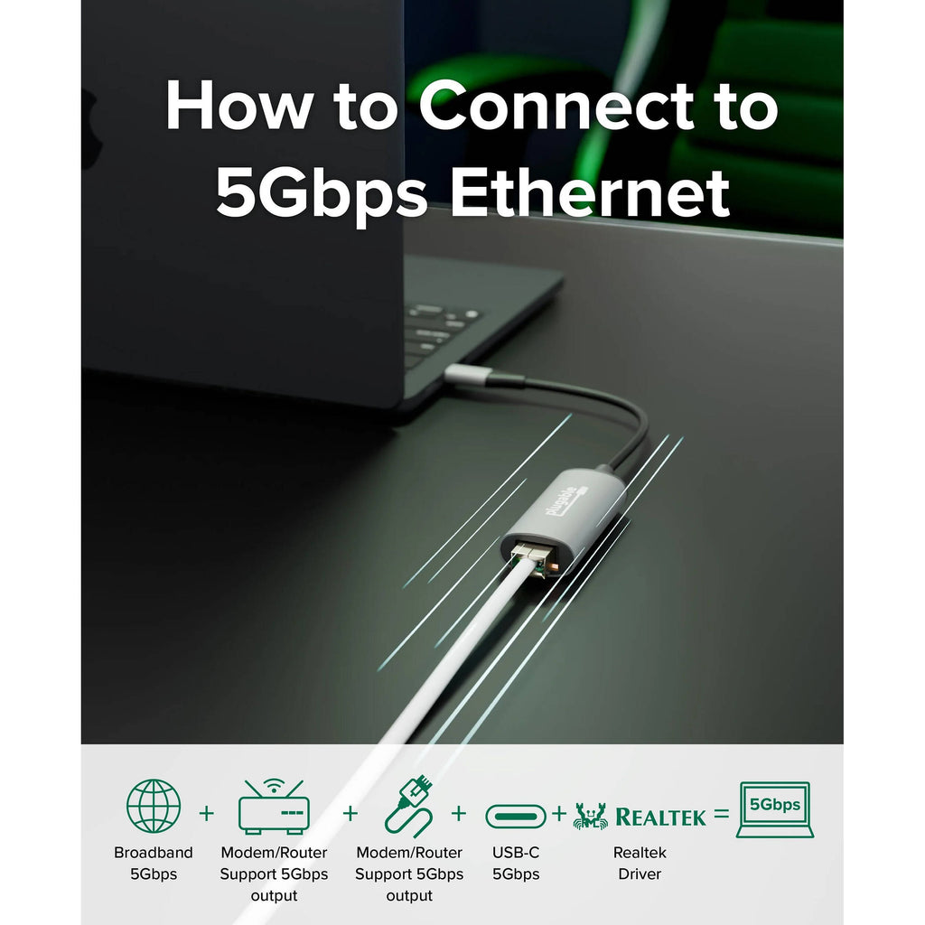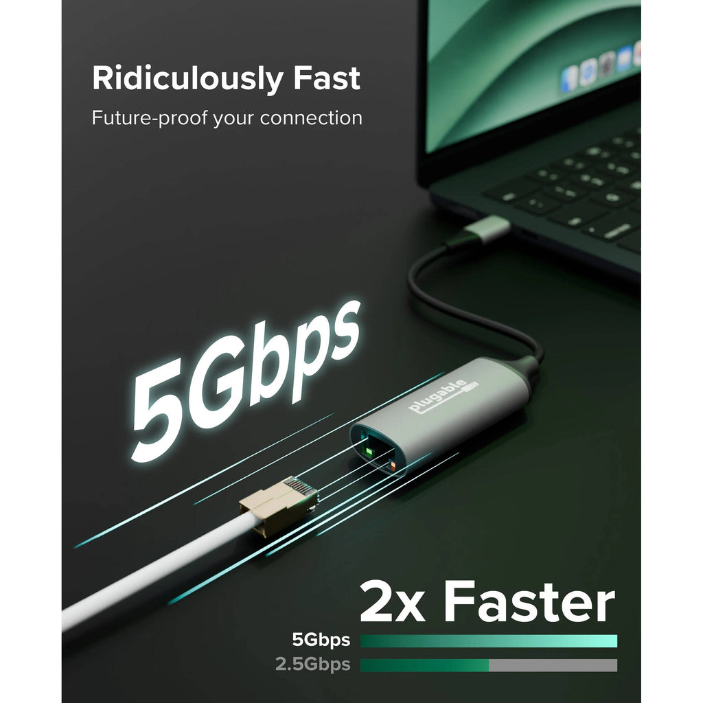 - Plugable 5 Gigabit Ethernet to USB-C 3.2 Gen 2 Adapter