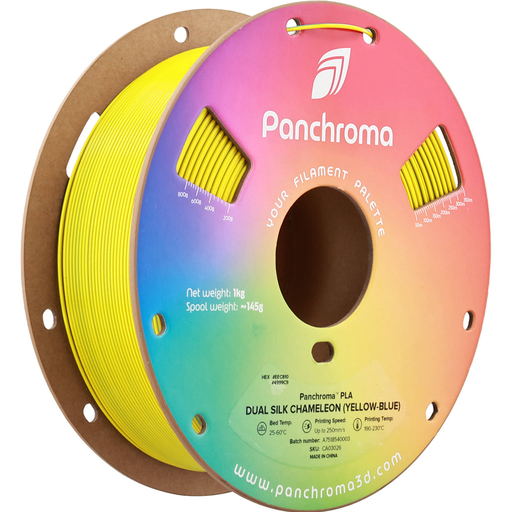 - Polymaker Panchroma Dual Silk PLA Filament (1kg, Yellow & Blue Chameleon)