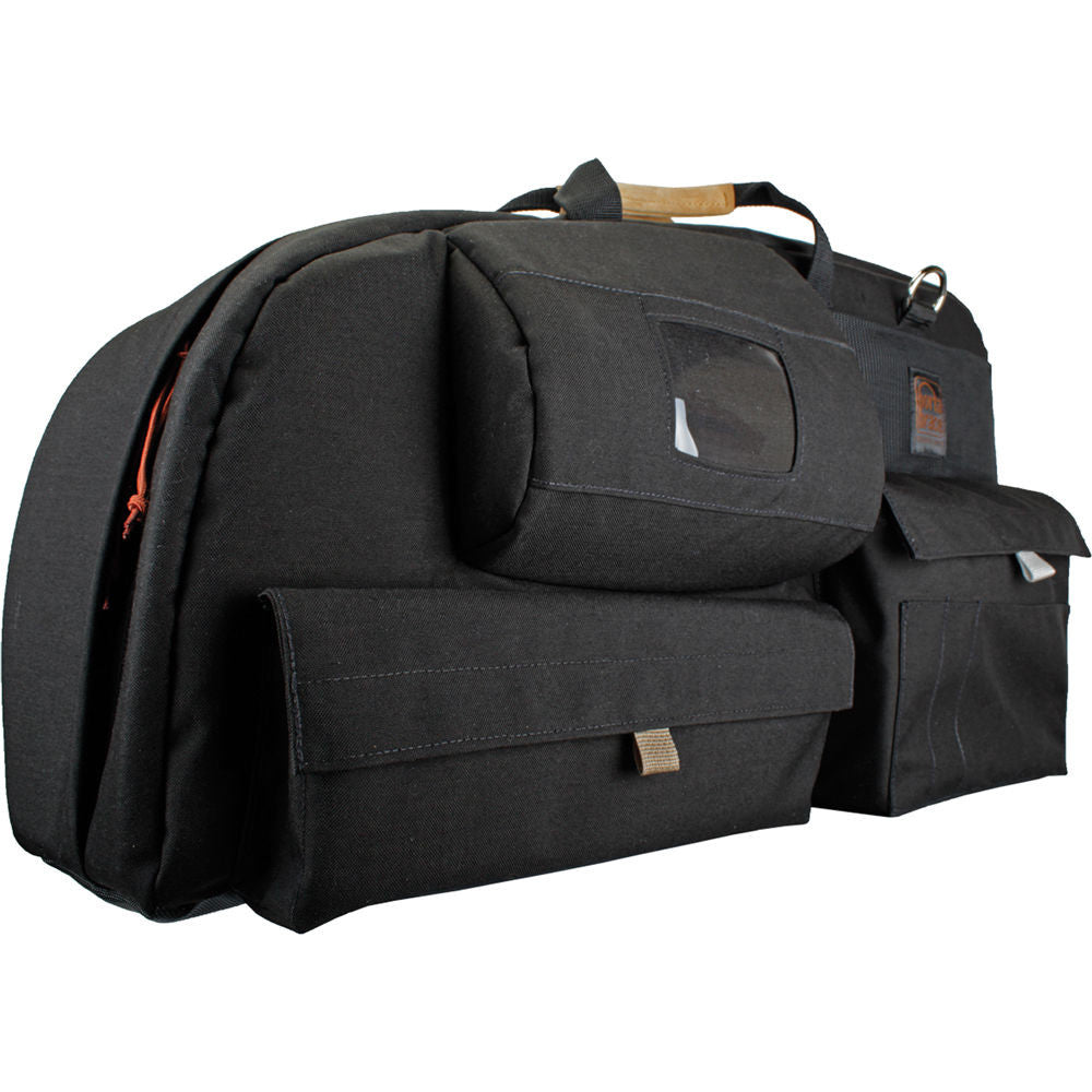 The CO-ABMVT Carry Case features an oversized padded viewfinder protector to accommodate side-mounts and brackets. An interior pillowing system provides excellent cushioned-protection for the camera. Two large exterior pockets and one interior slip-pocket are suitable for storing accessories, white-balance cards, and the Portabrace Rain Slicker (available separately). Colored tabs on pocket flaps help identify contents for convenience. Two exterior mesh slip-pockets hold tickets, maps, and passport. There's also a seat belt retainer strap to stabilize your equipment on the road.