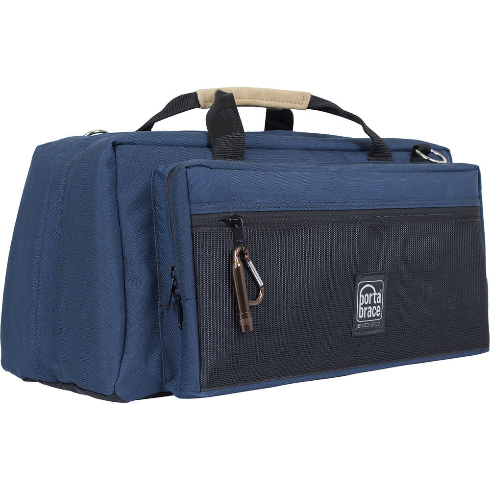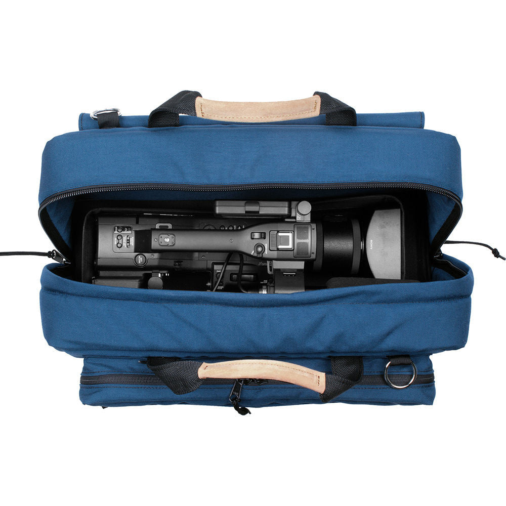 The signature blue with black string CS-DV4 Mini DV Camera Case from Portra Brace is designed to protect and organize the camera and the essential spare battery, tapes and microphones. It fits popular cameras such as the Sony PMW-EX1, HVR-V1U, HVR-Z1U, HDR-FX1, Canon XH-A1, XH-G1 and the Panasonic HVX-200. The cradle inside is adjustable and stays put to keep the camera from shifting. The case is made from 1000 denier Cordura nylon with a generous coating of polyurethane waterproofing, plus 1.0" thick foam padding. The bottom panel is reinforced with 8.0mm hollow core plastic, foam layers and a layer of Slip Not fabric, which adds an extra layer of protection against water, dirt and grime with an easy wipe-off surface.