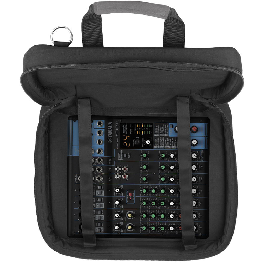 The MIXER-YAMAHA Compact Carrying Case for MG10XU Audio Mixer from Porta Brace is constructed using an abrasion-resistant 1000-denier CORDURA nylon material and is treated with a layer of water-resistant protection. It features half-inch foam padding throughout and is equipped with a single durable YKK zipper that unzips to allow the case to open and lay flat for easy access.