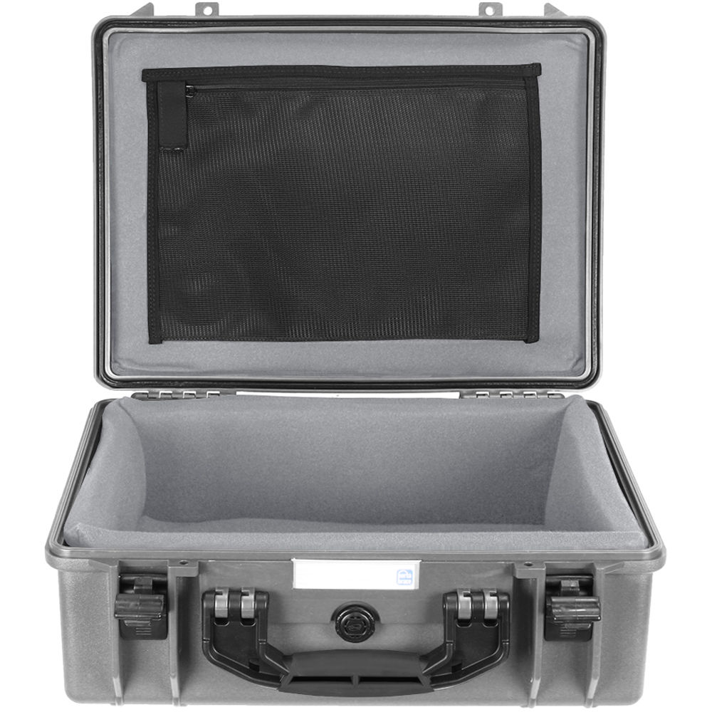 Store, protect, and transport your video, audio, photo, or other gear with the watertight, dustproof, platinum PB-2500DKP Hard Case with Custom Padded Divider Kit from Porta Brace . This high-strength TTX01 resin case features a zip lid pocket, a built-in purge valve, a front large folding haul handle, and a latch closure. The divider kit includes long bendable dividers, 5 x 3" dividers, a TSA lock, a small fleece pillow, and a padded iPad carrying pouch.