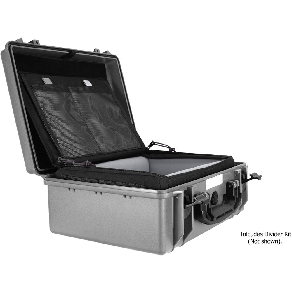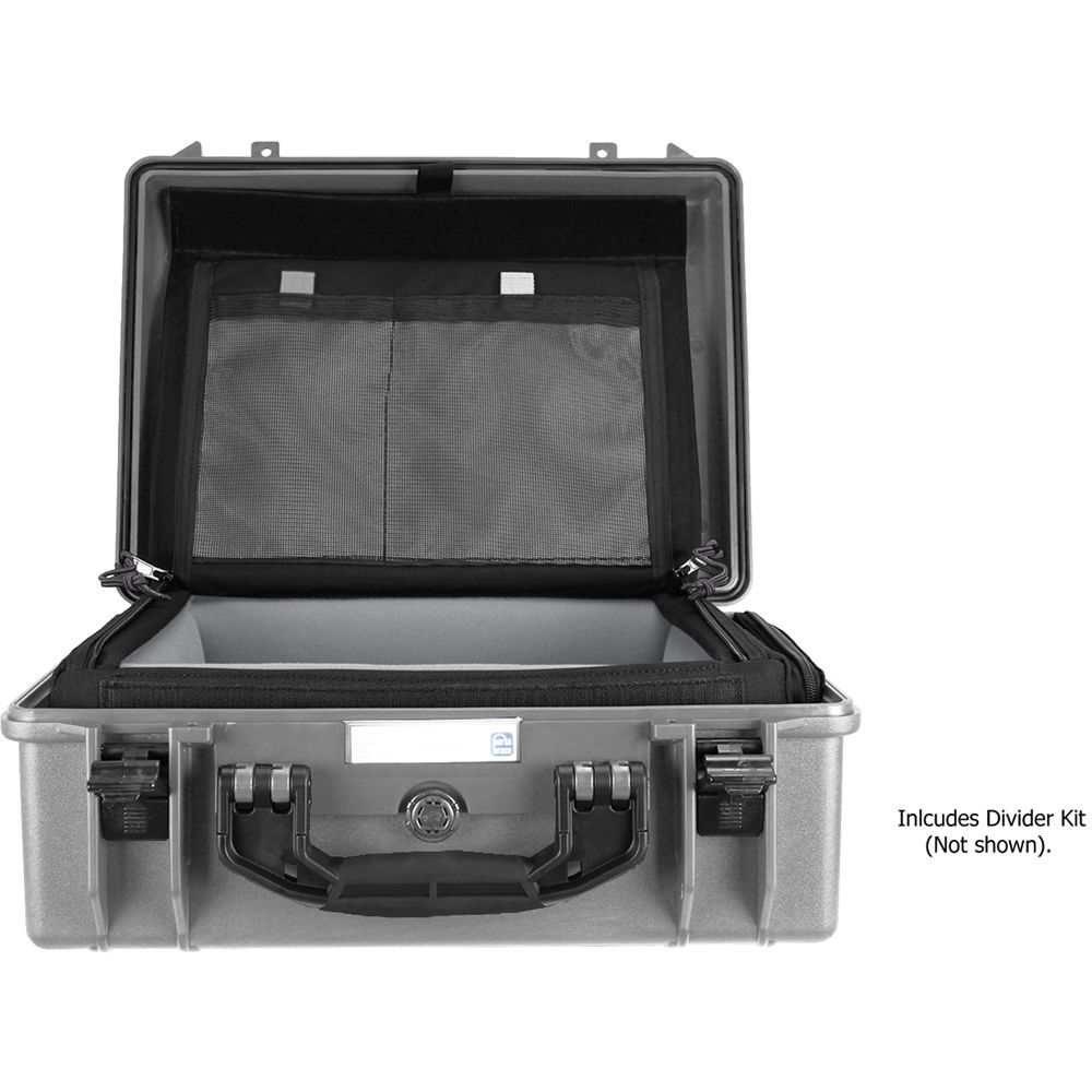 Store, protect, and transport your video, audio, photo, or other gear with the watertight, dustproof, platinum/black PB-2500ICP Hard Case with Interior Soft Case from Porta Brace . This high-strength TTX01 resin case features lid pockets, a built-in purge valve, a large front folding haul handle, and latch closure. The hard case includes a soft inner zip case, padded dividers, a TSA lock, a small fleece pillow, and a padded iPad carrying pouch.