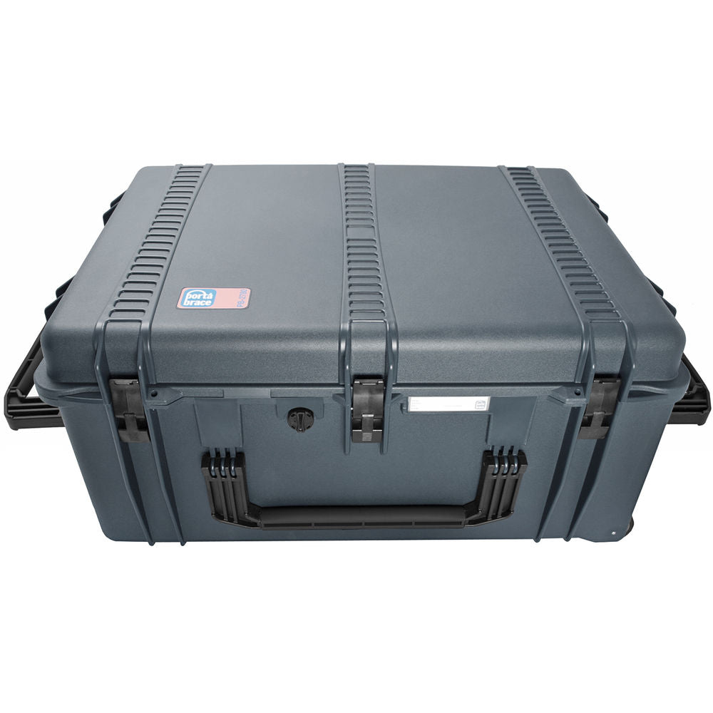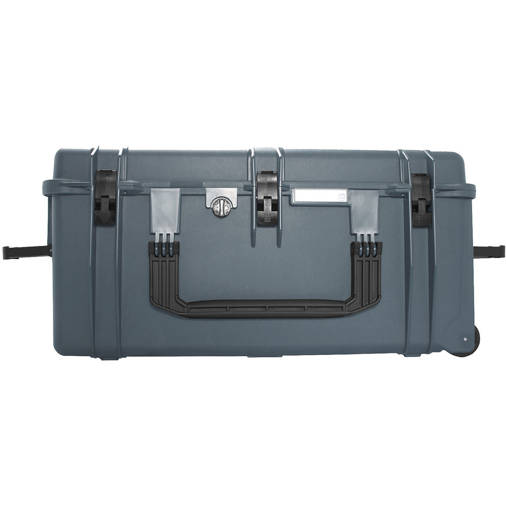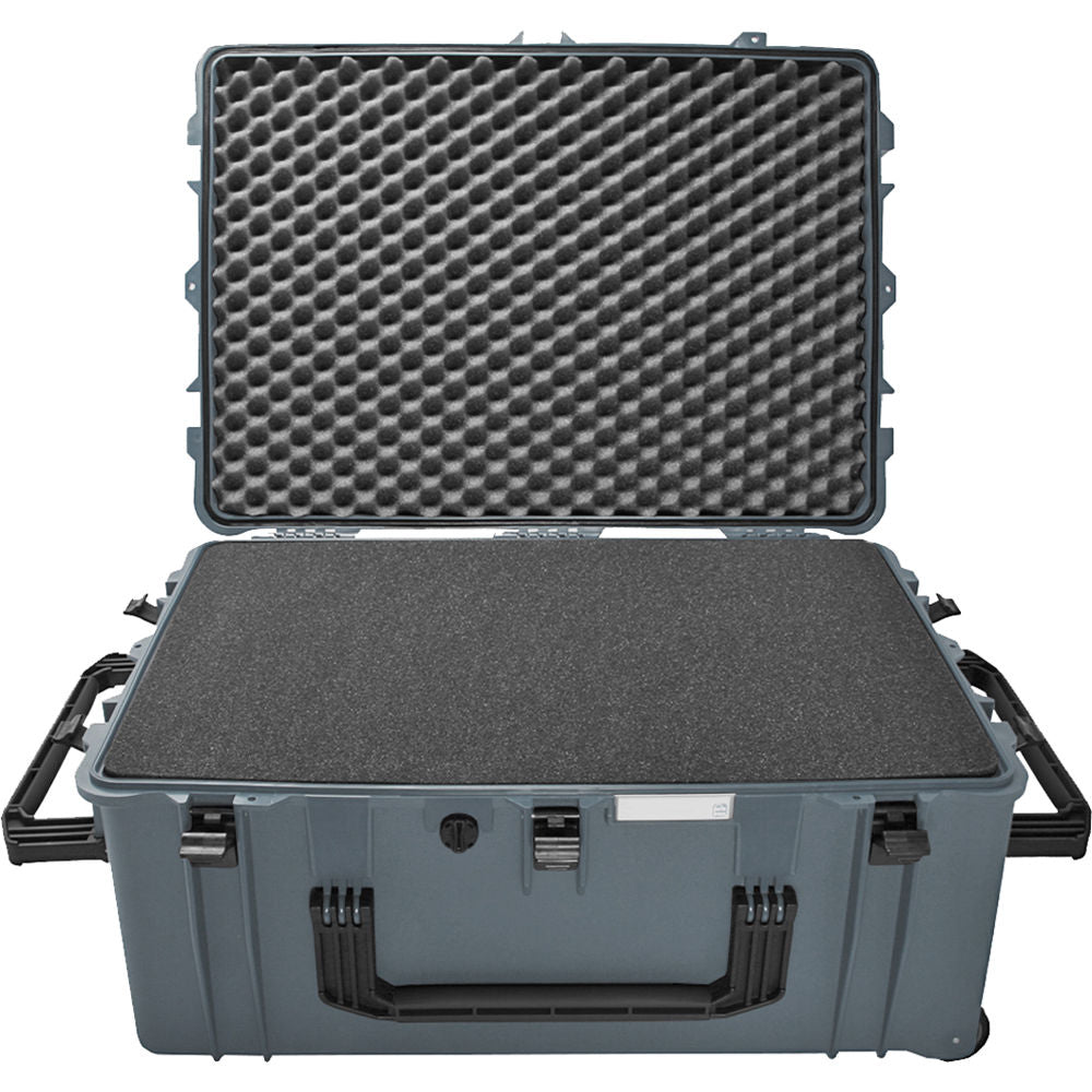 The silver platinum PB-2780FP Wheeled Hard Case with Foam Interior from Porta Brace is designed to carry and protect cameras, camcorders, lights, tripods, laptops, and accessories. It is made of TTX01 high-strength resin and has a cubed foam interior. The case can fit into a car trunk or you can stack two cases on top of each other in a van. Transport it via the three folding haul handles and built-in/smooth-rolling wheels.