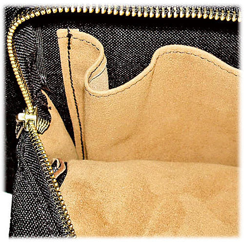 Material | Exterior: 1000 denier Cordura nylon Exterior: Antique brass hardware Exterior: Deerskin suede accents Interior: Microfiber lining |