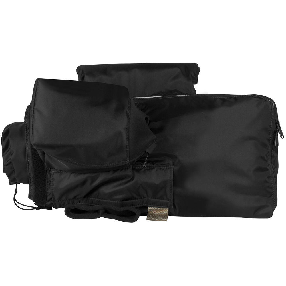 - Secures around your camera with three zippers, and a drawstring cover forms a tight seal around the lens or matte box