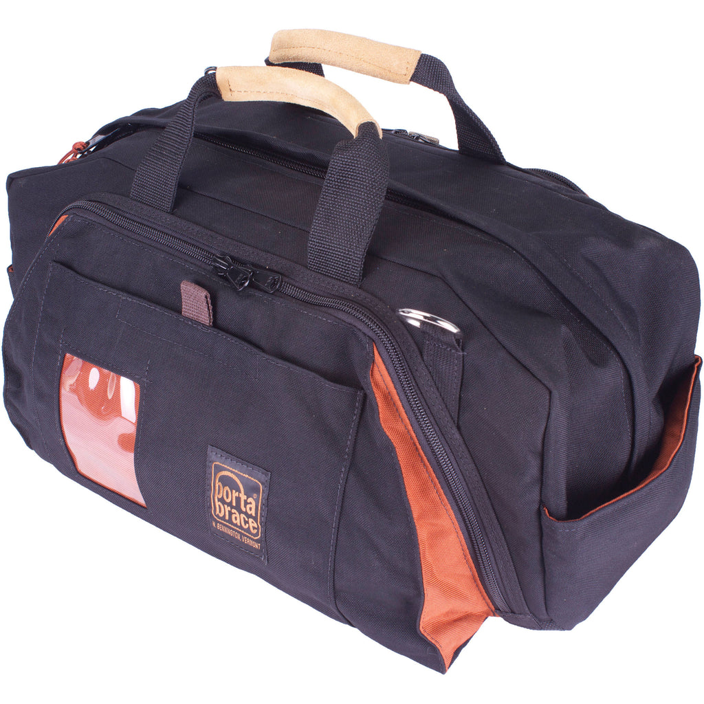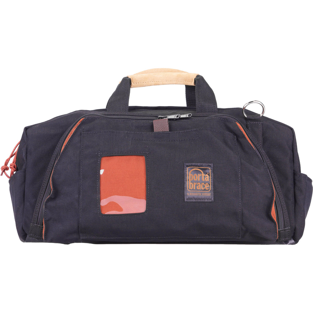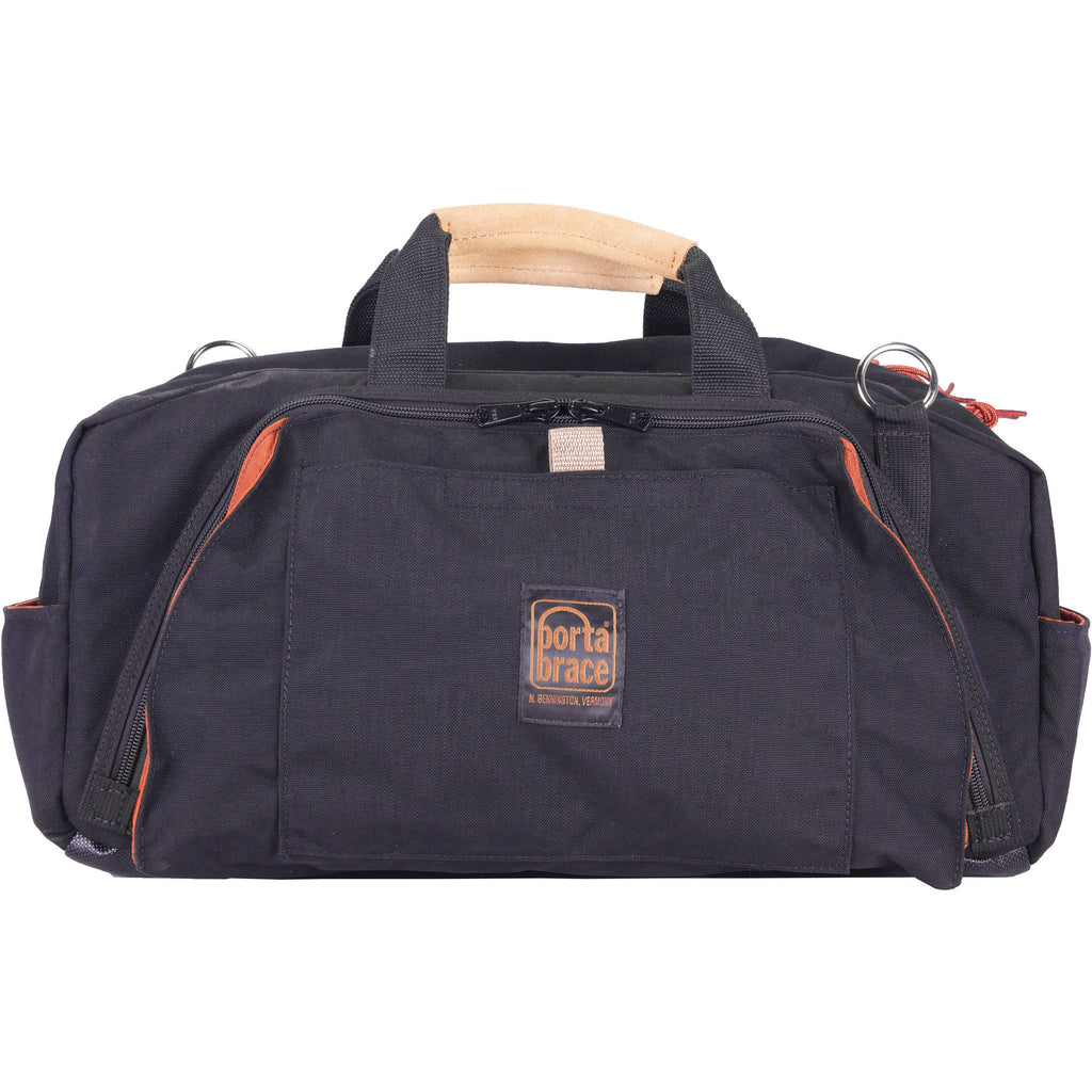 The Porta Brace RB-1 Lightweight Run Bag, Small (Black) is designed for news and production crews. The bag stores spare tapes, batteries, cables, microphones and other audio/video accessories. The main compartment is foam padded, with a padded rigid bottom. Two sewn-in dividers span the 7.0" width with a 12" divider in between. The long divider has a zippered slip pocket. On the outside there are two large zippered compartments for cables or other items. Fold them out of the way for one large compartment.