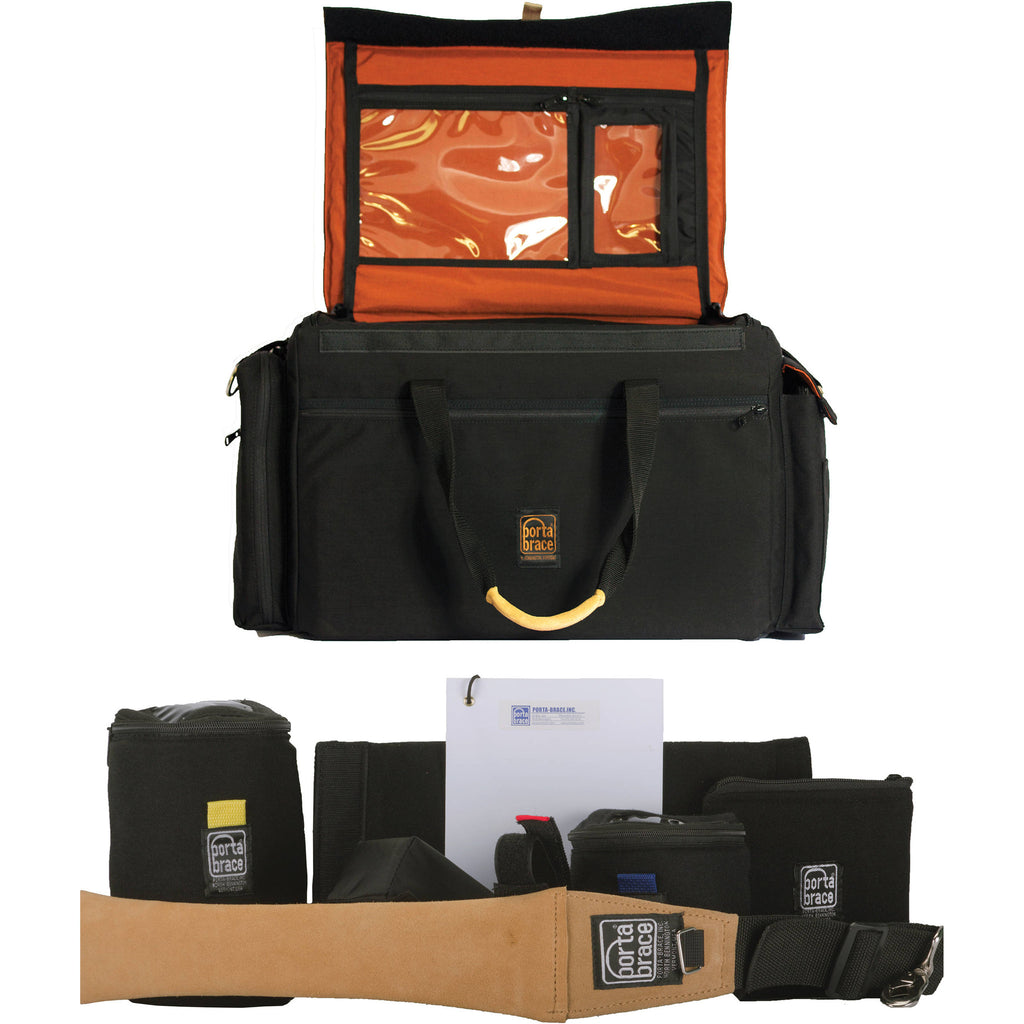 The RIG-3SRK Large RIG Camera Case and Interior Kit from Porta Brace is designed to carry cameras up to 20" in length with minimal or no disassembly. This large and flexible case is durable and complete with accessory items that will assure your gear is held safely and comfortably in place. The case is made from rugged 1000-denier Cordura and features 1" thick padding surrounding a hollow-core plastic frame. The bottom is bolstered by a layer of waterproof rubber to assist with ground protection. It's carried by its two top suede leather carry handles or its removable suede leather shoulder strap.