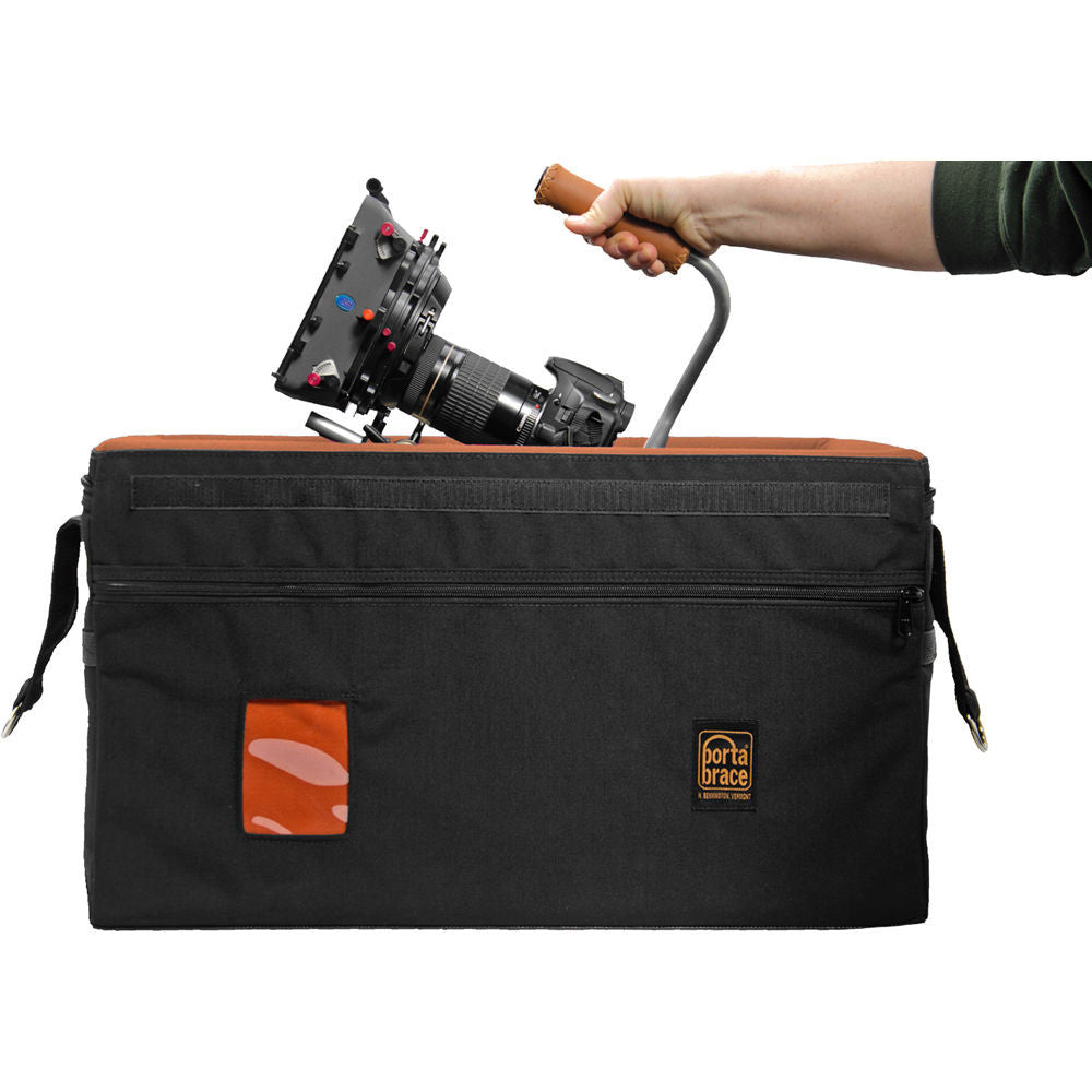 Protect and transport your C100 Mark II camera rig with the Porta Brace RIG-C100IIC Carrying Case for Canon C100 Mark II . With an exterior made from 1000-denier Cordura surrounding a hollow-core plastic shell, this case is designed for the rigors of the road. The main interior compartment can fit a Canon C100 Mark II rigged-out, or the body with additional lenses and loose accessories. A soft orange padding surrounds the interior and prevents against impact damage to your gear.