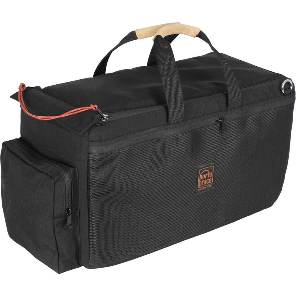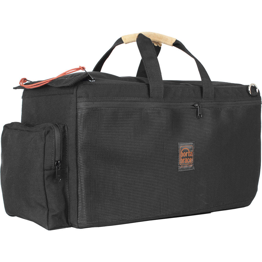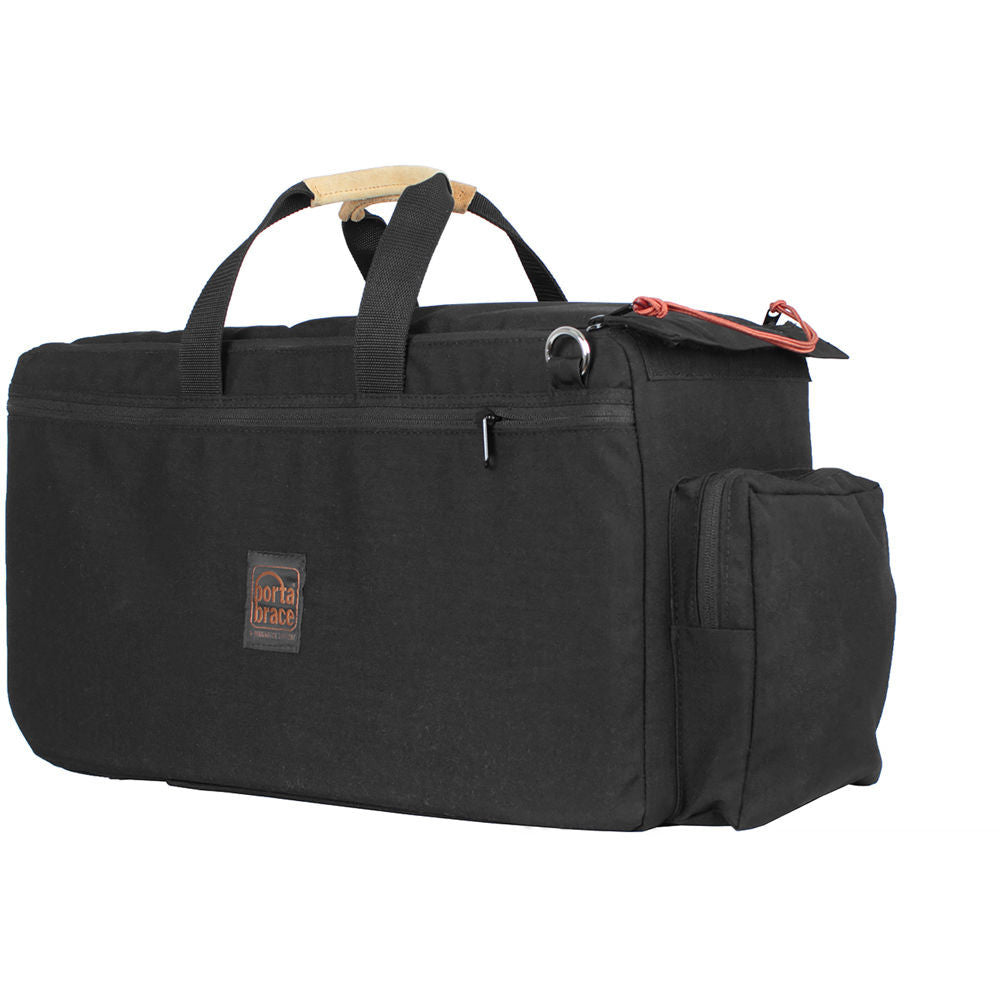 Store and protect your Sony FS5 camera or similarly sized pro camcorder in this black RIG-FS5XT Case from Porta Brace . This bag has been designed to provide extra height within the interior to easily hold your assembled equipment. With an interior height of 9" this case can fit a pro video camera up to 21.75" long. The interior of the case is made with copper-colored Veltex allowing for clear visibility. A divider system includes a horizontal divider, a hanging pocket, a padded divider pouch, a camera tie-down, and a camera cradle. Lens cups and a white balance card ensure you will be prepared for your next shoot.
