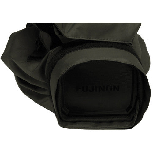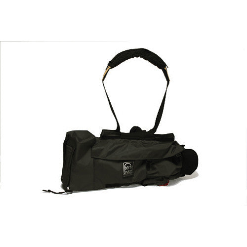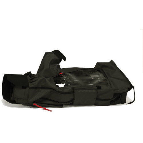 The Porta Brace STC-2EX Storm Coat Extreme was designed to protect broadcast cameras from heavy weather conditions. It is made of a 3 layer bond of tough 200 denier nylon oxford, a waterproof sheet of Fabuthane, and a soft layer of nylon tricot. The coat is fast and easy to put on with an extended zipper on the bottom and a zippered viewfinder sleeve. There is a neoprene gasket around the lens shade both grips the lens shade to keep the case in proper position, and seals out harsh weather, sea-spray and dust.