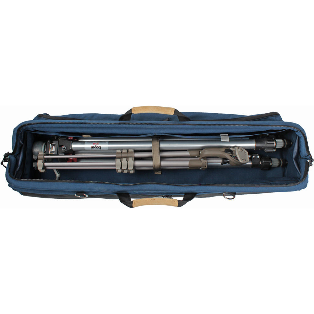 Store, transport, and protect your tripod, light stands, and other gear up to 39" long with the signature blue TLQ-39XT Quick Tripod/Light Case from Porta Brace . Photographers will appreciate the rigid, easy-access, wide-mouth zippered opening, and the durable, padded, 1000D Cordura nylon construction. Interior and exterior pockets provide handy storage for accessories. Use the interior tie-down straps to secure gear. The case can be carried comfortably by the dual, suede-covered top handles, hauled with the handles on either end, or worn with the included shoulder strap. Also included is a carabiner with flashlight.