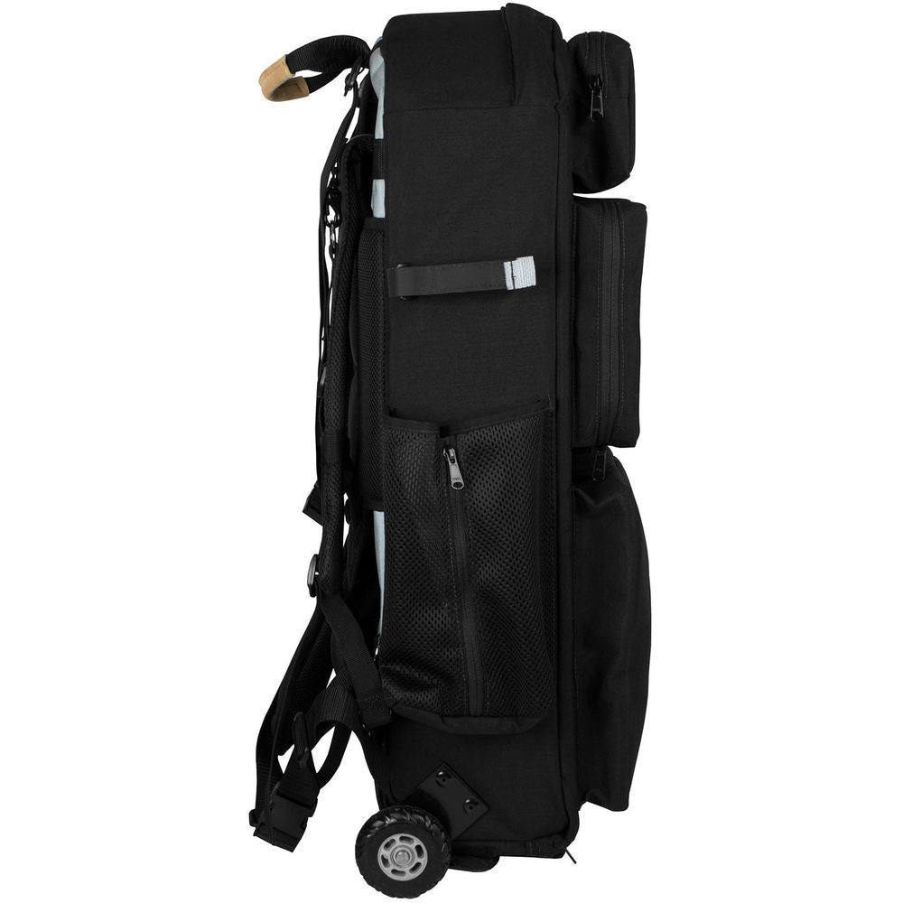 A variety of interior and exterior pockets, tie-down strap, camera case stuffer pillow, viewfinder cover, laptop pouch, and padded dividers make organizing gear simple. Carry the pack by the dual, suede-covered side handles, or wear with the padded, adjustable shoulder straps. For added stability and comfort, the pack has lumbar support and an adjustable waist belt. Users will appreciate the hide-away harness system for those times when it's easier to hand carry. You can also roll the bag using two rugged, removable wheels by pulling with the top strap. The wheels are smooth and durable for rough, off-road environments.