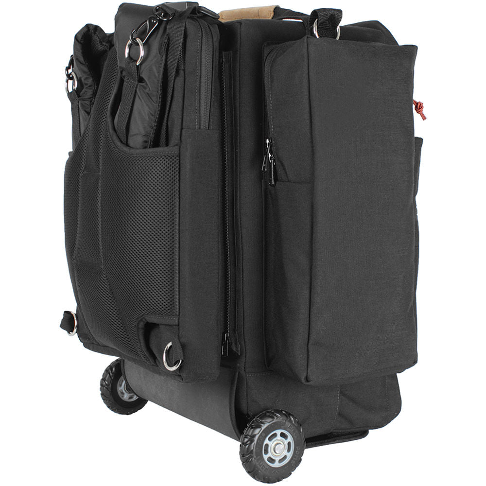 A variety of interior and exterior pockets, side tripod pocket, camera cradle with tie-down strap, CS-B9 stuff sack, small stuffer pillow, pocket for up to 17" laptops, and multiple padded dividers make organizing gear simple. Carry the pack by the suede top handle or wear with the padded, adjustable shoulder straps. For added stability and comfort, the pack has lumbar support and an adjustable waist belt. Users will appreciate the hide-away harness system for those times when it's easier to hand carry. You can also roll the bag using two rugged, removable wheels by pulling with the top handle. The wheels are smooth and durable for rough off-road environments.