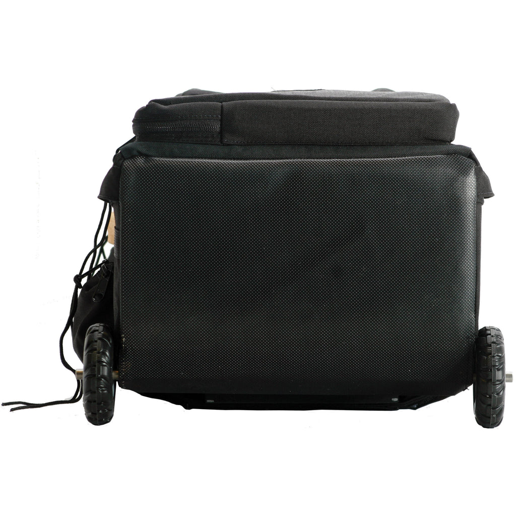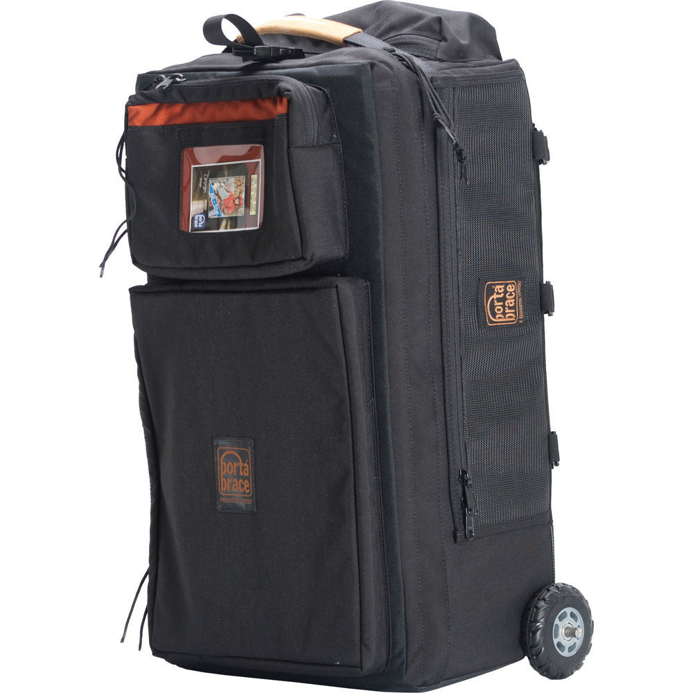 The small midnight black WPC-1ORB Wheeled Production Case from Porta Brace is made for transporting all kinds of heavy loads for studio, audio, video and film equipment. The cases are designed to be used for handling gear on location as well as transporting apparatus to the job site. They are constructed of a strong ridged interior frame covered with 1000 denier Cordura nylon fabric, with padded protection all around.