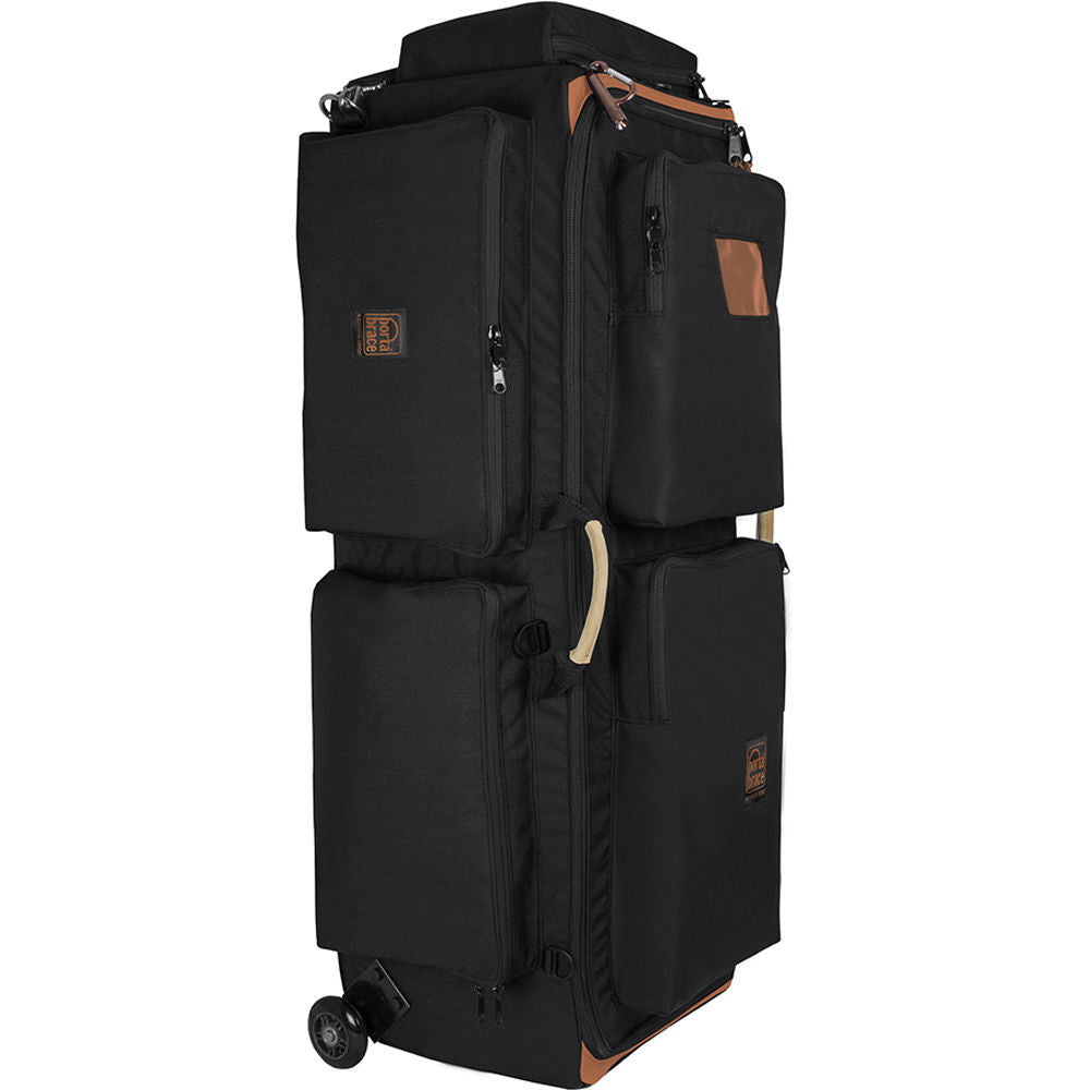 The Porta Brace WPC-3OR Wheeled Production Case, Large (Midnight Black) is made for transporting all kinds of heavy loads for studio, audio, video and film equipment. The cases are designed to be used for handling gear on location as well as transporting apparatus to the job site. They are constructed of a strong ridged interior frame covered with 1000 denier Cordura nylon fabric, with padded protection all around.