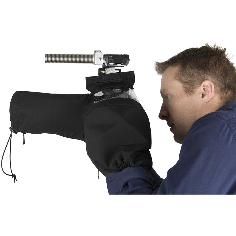 Protect your Sony a6400 or similar camera from rain, dust, and sea spray with this DSLR Rain Slicker from PortaBrace. Constructed from triple-layer nylon with a waterproof coating, the slicker has sleeves with elastic openings for full access to your controls while keeping your camera and hands dry. A double-layer, hook-and-loop access panel along the top allows you to attach flashes and lights, and clear vinyl windows provide easy viewing of display screens and lens points.
